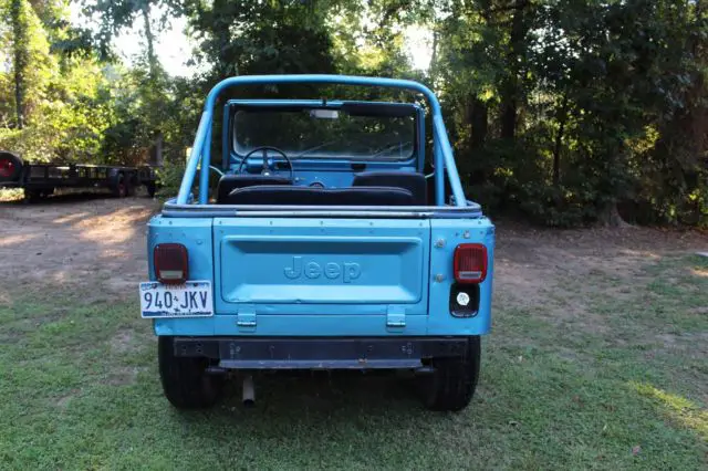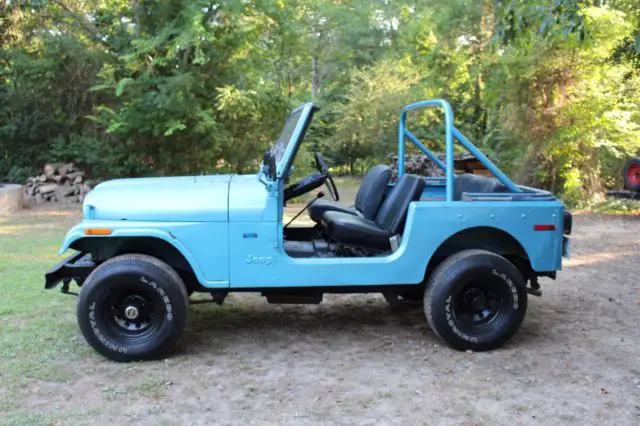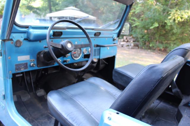 This vehicle is 4.2 6 cylinder3 speed manual transmissionDana 20 transfer caseDana 35 front (disc brakes)Corporate 20 rearManual steeringTires and exhaust are in excellent conditionNo oil leaksSprings and shocks in good conditionThis jeep drives very nicely for its age. It is an old school cj, and it is well worth restoring.The original top was blue, but it was removed because all the zips were broken and the windowsfogged. Have the original frames for the doors and the top including bows. I will leave to thepurchaser to choose what color top they want. I was going to put black top.