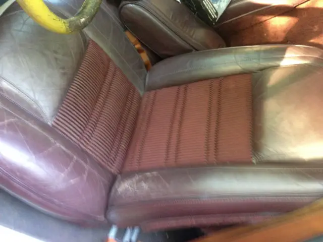 The seats are from a newer wagoneer and are maroon, but goes very well with the saddle interior. The headliner is original and is showing its age but intact and not drooping.