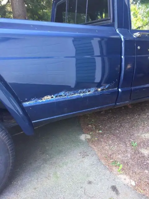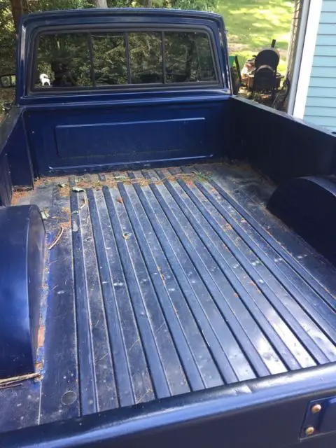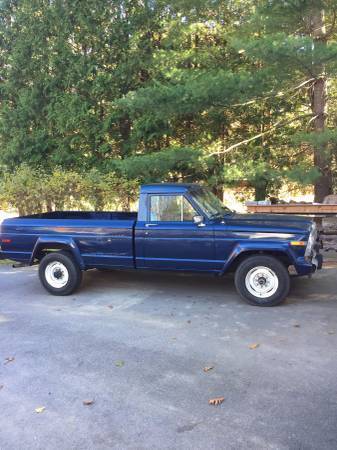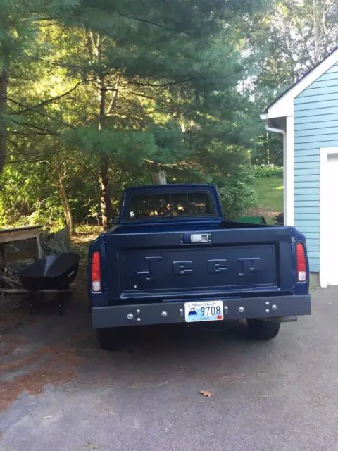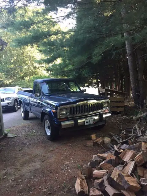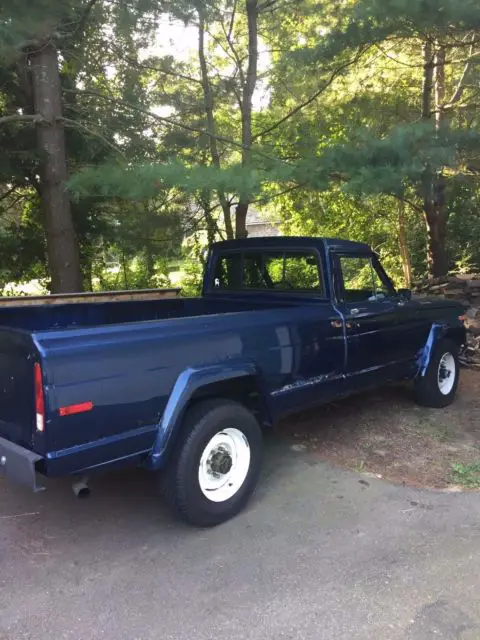 Low miles, 8,400 lb. GVW. AMC 360 V8, auto trans. Body is original except for donor tailgate and Grand Wagoneer doors that were installed prior to my ownership. Power locks and windows (need lubrication). Solid frame and body, a little rust on both sides of the bed. Bed was removed, frame was cleaned and painted over ten years ago and the truck was painted in the dark blue metallic in 2004. Truck had a plow on it years ago, but all plow gear has been removed. Good solid truck, excellent candidate for resto. I simply don't have the time with two young children at home.