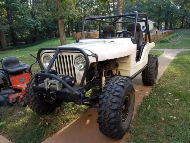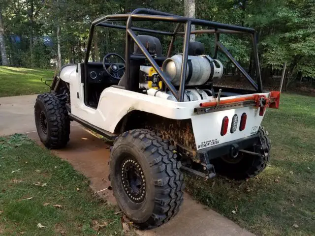 1977 Jeep CJ5 (with clean title)Most of the tub is hand made and adjusted so there is more leg room in this CJ5.Dana 44's F/R with 5.13s and locrites F/RT18 4 speed with 6.32:1 first gear.Dana 20 tcase twin sticked but currently don't have any shifters for itAMC 360 with HEI on propaneBelly skid plate along with rock slidersSolid steel steering linkage36" TSL's on beadlocksCustom cage tied into frame and seatsSquare driveshaftsXRC 8000 winchThe not so great stuff:Pops out of 3rd gear ocassionally.Steering pump has small leak.Missing tcase shifters (it can still be manually shifted in/out w/ a screwdriver)The frame has a weld joint about 3/4 of the way back where it has been joined with another frame back half.May have a charging problem. Only getting 12V on meter but haven't looked into it.Exhaust leak at header flangeBattery is 6 yrs old