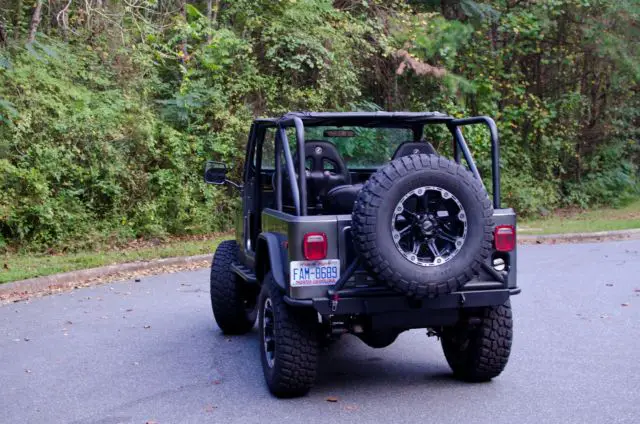 -The body is rust free. It has been modified to look like a newer wrangler with the familystylerole cage, steel flat front fenders, and steel fenderflares. The custom bumpers and side steps are also great additions. The front has a winch mount and the rear has a swingingtire mount and a receiver for a hitch. The paint is ametallic silver that looks great in the sunlight. It is a pretty good paint job. But it is not perfect, there are a few scratches on the front fenders from working on the engine and there is a very small paint bubble on the back right quarter panel i have included a photo of. It also has a bikini top so you are out of the sun on hot days.