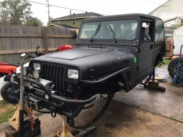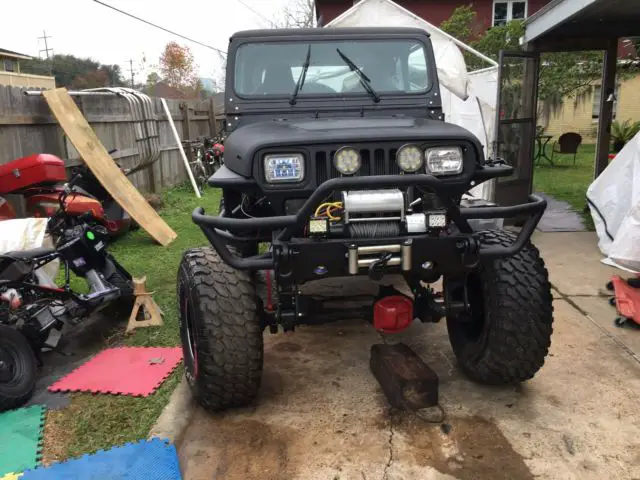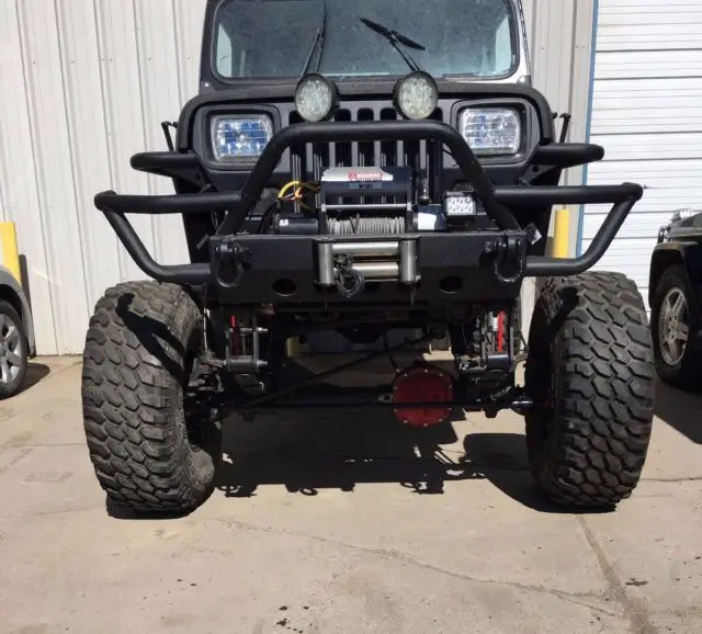 Motor: Performance 4.2 1000 milescarb . oemtriple row radiotorTransmission: OEM style new clutch miles1000Transfer case: Rebuilt Yukon Slip Yoke Eliminator 100Custom axles: 4/11 gearing w/ lockers front and rearNew Drivetrain all Yukonshocks :bds foxsprings +5body:+2 urathaneTires (35x12.5) MotorCraft x5 (quantity: 5)Wheels (American Racing 15x5.5) (quantity: 5)Front and Rear custom bumpersled lighting front and rearheadlight tail light ledside rock slidersnerf bar tubingrear hitch10,000LB wenchcustom paint flat blacknew seats (leather bucket style)Fold-out flip-screen stereo800watt self-powered subnew dyno matting and carpet