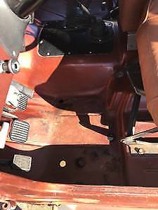 Interior is in very good condition, all roll bar padding is in place, all instruments on dash work including all of the original accessory controls. Dash has NOT been cut up and is not rusted at all. Has lockable center console and lockable under seat storage under the rear seat. Top and windows are in good shape, a couple of the snaps on the top need replacing but nothing is torn or ripped and windows are clear with light scratches. Also has a set of half soft doors that come with it that appear to be original to the Jeep and a bimini top still in the box under the back seat.
