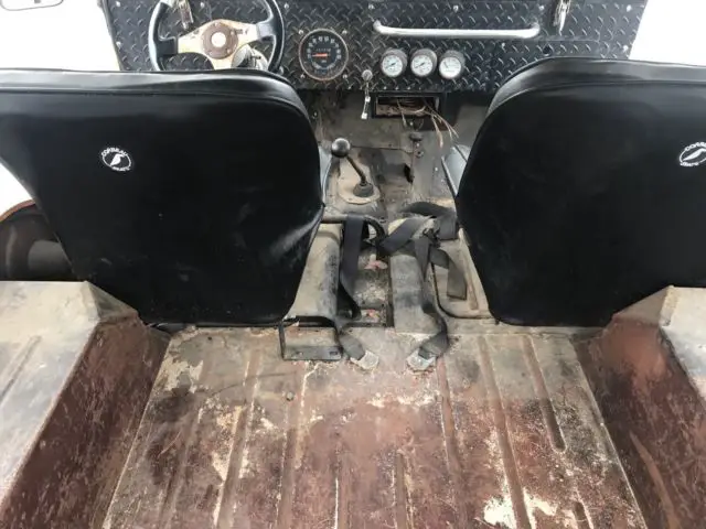 Buick odd-fire V6, Holley 2 bbl, HEI conversion,3 speed manual trans, trailer hitch, 3" lift, 30" Yokohama Tires, tilt steering column with Grant steering wheel,Corbeau seats, Bestop soft top, Flowmaster, Autometer gauges, Diamond Plate protective panels on rear corners and rockers.Runs beautifully, all brakes work, all lights work.Could be driven immediately, or the beginning of a great project.