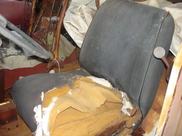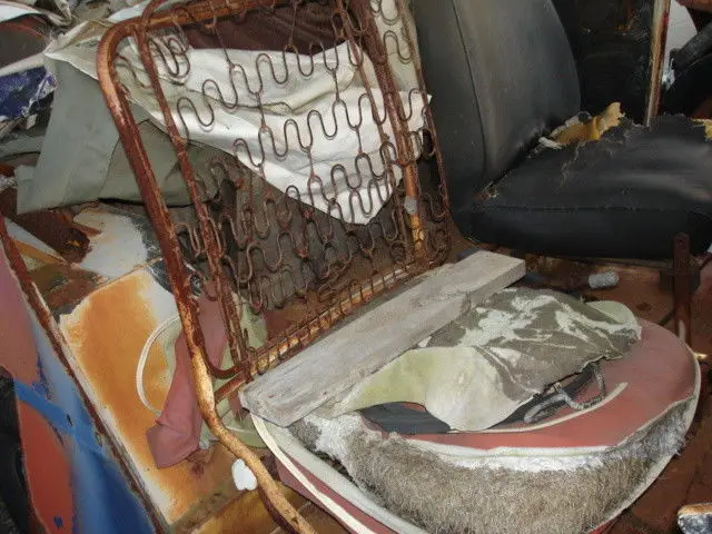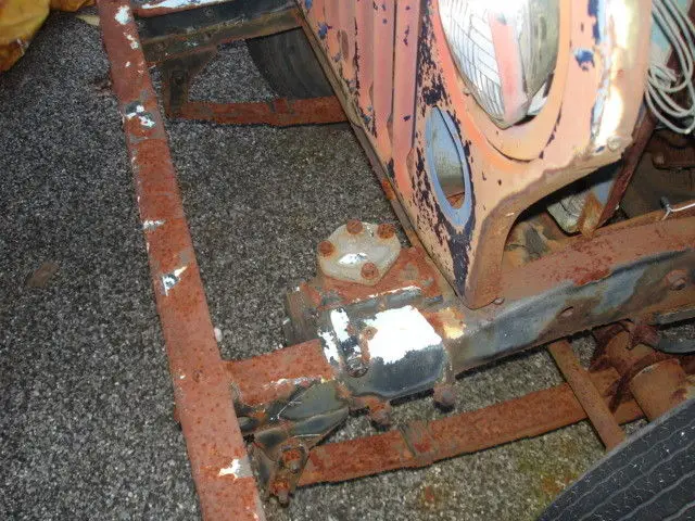 The front end appears straight as is the bumper; 4 wheels; back bumper is fine; all steering/linkage ok. Frame looks fine. The floor shifter is original and I believe the seats as well---someone emailed about the seats. The knobs and steering wheel are believed to be original as well. (We made up a way to lock the shifter so someone couldn't take it. If I can find that piece I'll throw it in.