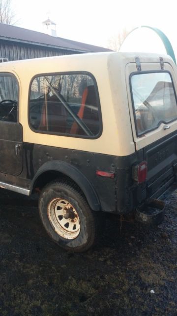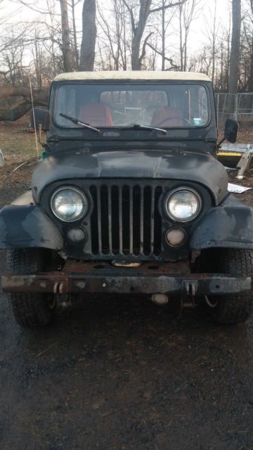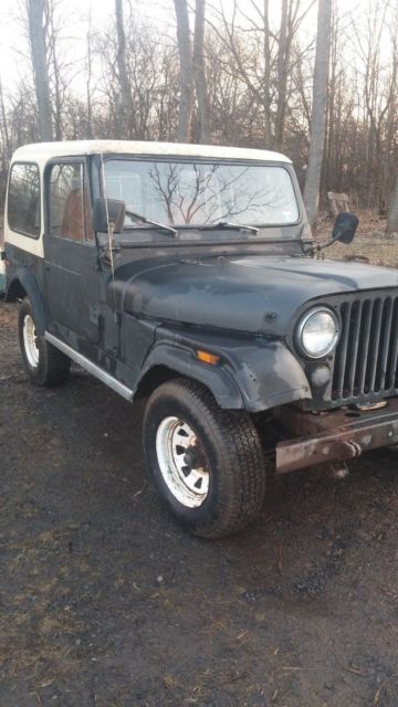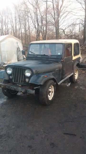 I am selling my 1976 CJ-7 Jeep In-Line 6 cylinder...Body and frame in decent shape, has been driven in the winter and has seen NY salt...For those that want to joy ride in it...it will need an inspection...it was last inspected in FEB 2013...the speedometer, RPM gauge, fuel gauge do not work..also the fuel tank is behind the rear seat (the previous tank rotted out and was replaced with fuel tank in back when I bought it)...4x4, lights, and horn work good...Engine starts right up, runs a little rough at first, then smooths out...Tranny shifts great...New battery and some new plugs and wires...Brakes work...Nice hard top canopy, however, the right hinge is a little loose due to some rust, nothing major...I'm probably forgetting something but basically, this is more of a lot/farm truck than a joy rider...but it could certainly be a joy rider with some work...but this is definitely something you could have a lot of fun with and still use in a practical manner...