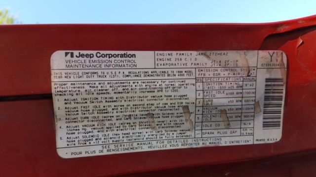 1988 Jeep Wrangler Additional Info: