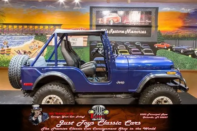 Hit The Trail Today THIS CAR INCLUDES A 1 YEAR 5000 MILE SERVICE CONTRACT! Just Toys Classic Cars is your Jeep headquarters and here is another fine example. We are proud to present this awesome 1973 Jeep CJ5. CJ5's and CJ7's are some of the most popular today. We have some of the finest around and at great prices. This example here has been totally redone. The fit and finish are in great shape and it is a brand new... metal tub not fiberglass. The bright blue paint shines like it just came out of the booth yesterday. This baby is ready to hit the road and the trail for sure. The interior of these older jeeps were not full of frills and gadgets. These were very basic and this one tells you everything that you need to know about what is going on with your Jeep at the time. As you will see everything has been redone there as well. The way that you see this one is the way that it comes. There are no other tops or doors that come with it. Obviously you can purchase those and customize it how you would want to if you wish. Under the hood sits the 304 it was born with and that is mated to a 3 speed manual transmission. Everything works awesome on this and the miles that you see on the odometer are what it on it since it has been re done. Are you ready to make this yours yet? What else can we say other than this is an awesome Jeep that you need to make yours today. Everything is built and done. It just needs you to turn the key and take on that next trail. We offer classic car financing for those that would like to take advantage of the option. They offer great rates and terms with as little as 10% down. This way you get the vehicle of your dreams and don't have to take all of your cash out of the bank at once. You can start your process by going to financing and follow the directions. We look forward to speaking with you soon and we look forward to making you the newest member of the Just Toys Classic Cars family. 1973 Jeep CJ5 304 3 Speed Manual Transmission Stainless bolt package used for restoration. New wire harness used for restoration. New tub and fenders were rhino lined to prevent any rust in the future before it was installed. (there will be no diamond plate in this jeeps future.) Mickey Thompson rims. Brake assembly's for all four wheels were completely redone for restoration. Custom built full roll cage built for the restoration. Everything new from the frame up. Engine Engine Type Gasoline Engine Size 304 Fuel Specification — Body Body Color — Body Style Jeep Doors 2 Paint Type — Basic Year 1973 Make Jeep Model CJ Miles 234 Interior Interior Color Black Secondary Interior Color — Seating Type Bucket Seat Material Vinyl Shifter Type Floor Center Console No Visit Just Toys Classic Cars online at to see more pictures of this vehicle or call us at 407-598-0504 today to schedule your test drive.