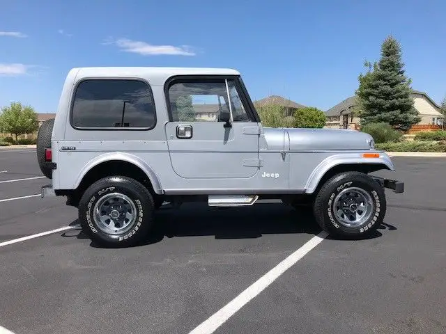 Selling a mint condition 1983 CJ-7 LIMITED with only 51k miles on it...It has a perfect car fax and auto-check reports.This a one owner jeep that was bought new in Denver Colorado on may 31st 1983 and has remain here the whole time...I have all the books,paperwork and the window sticker when it was sold new...As you can tell by the pictures the outside and inside are in outstanding condition...Even looks better in person...Everything works on the jeep--- all the lights inside and out,horn,4wd,gauges and radio...Engine compartment is very clean and shows its low mileage...It shifts as it should and there is no sloppy play when you shift gears...Does not stall or blow any smoke...The limited CJ are very hard to find as they only made them in 1982 and 1983....Finding one with low miles and great shape inside and out are even harder to find...The inside interior is in gorgeous shape with no cracks or fading and seats are in perfect condition...Tires are in decent shape and so is the paint....It has been garaged its whole life as you can tell by the pictures. The windshield does have rock chip and there is 1 surface rust spot on the right quarter panel..The side steps have some surface rust also..The color coded limited hardtop is in great shape also....If you are looking for a original limited cj7 with low miles i would jump on this! I have more pictures or if you have any questions please ask...I can help with shipping or if you wanna fly in you can drive this one home for sure...I can pick you up at the airport...This jeep drives straight down the road with no play as it should with the low mileage...The mileage will change as i will be driving the jeep around town on nice days...If you have under 10 feedback please email me before bidding...Thanks for looking at the auction and good luck! The jeep does not leak any fluid if any kind..