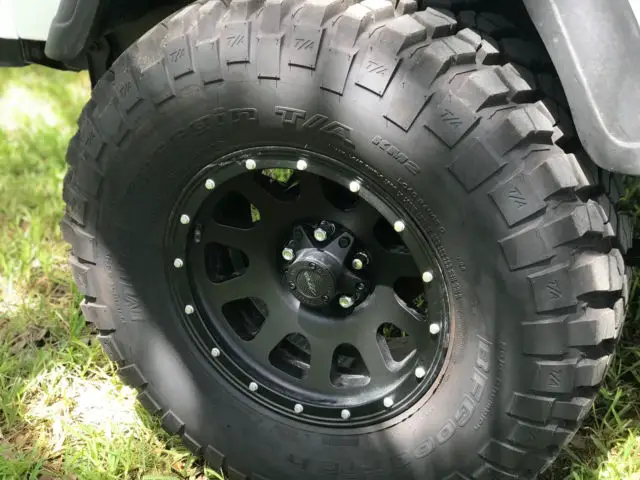 - Brand new 33” tires and 16x8 wheels. BFGoodrich Mud-Terrain KM2. Top of the line. Special sized to fit perfectly in the wheel wheels without needing re-gearing or much trimming. Tires still have the rubber nipples on them. Never even seen Armor-All yet. Less than 400 miles on them.