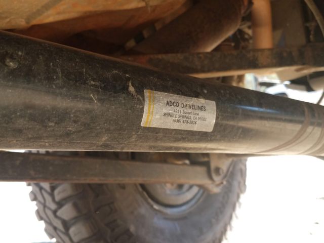 4.0 5 speed NV3550, RockTrack 4:1 transfer case, 4.88 gears, ARB rear Spartan in front, Tacoma rear axle, Front is a Hybrid Toyota 8" center with D44 outers done by WelderBilt, 1 -ton steering using Heims, Custom long travel drive shafts front and rear, Clayton long arms front and rear, Interior roll bar, custom Bilstins in rear, fronts are blown out Ranchos - I have a set of Fabtech's that were on front that need rebuild. Boat sided center and front. Custom bumper with hitch mount winch. 35's are less than 5000 miles, McNeil Baja fenders.