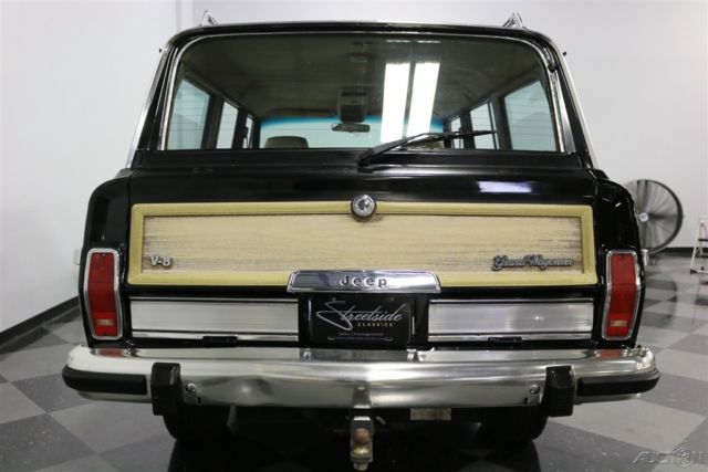 This 1991 Jeep Grand Wagoneer is one rugged looking workhorse. More than a quarter century after it began its duty, it still cuts a very appealing "no nonsense" appearance and, with its numbers matching drivetrain plying its trade alongside some well-chosen aftermarket upgrades, runs with a level of confidence-inspiring smoothness that's very hard to find in a classic SUV. While its black paint does show some evidence of its years of service - after all, it's more than 25 years old and likely hasn't seen the inside of a paint shop during that time - you won't find any glaring dents or scratches, so this vintage Jeep remains very presentable. The woodgrain paneling ornamenting its sides is actually looking pretty strong and, even upon close inspection, you'll find that its sturdy frame has done its job well. There are no signs of sagging on its sizable form and its four doors, decklid and liftgate all open and close with no issues at all. A trip to the local re-chroming shop will have the front and back bumpers looking their best, as both are table straight and show no major dings. There's a pretty sizable array of glass surrounding the cabin - 3 windows and a couple of wind wings per side, plus the front and rear windshield - and all of it is looking impressively clear while being surrounded by rubber seals that have plenty of life left in them. Take a look beyond the doors and you'll see a clean interior that holds some welcome surprises. An Alpine media player has been so cleanly installed in the dash, it could be mistaken for factory equipment, though it offers functionality that was way out of reach at the time this Jeep debuted as well as convenient A/V inputs for passenger entertainment. A CB radio is on board, complete with front loudspeaker and though it will need a bit of tuning to perform as intended, it looks fairly new and should have plenty of life left in it. Due to a complete reupholstering session only about a half year back, the seating throughout the cabin is in fine shape and is plenty comfortable for even the longest of journeys - the front buckets feature power adjustment and they, as well as the bench seat behind them, really look great. Up front on the dash, the array of control knobs and switches are all working as intended and the gauges in the instrument cluster may show a bit of age but they, too, are completely functional. The engine compartment is well detailed and tidy - this '91 likely made a trip down to the steam cleaner not long ago. At its center sits the original 360 cubic inch V8 and it still acquits itself well, starting right up and running smoothly to provide a very pleasant driving experience. An Edelbrock 4-barrel carb and intake manifold have been added to provide some extra power and a nicely sized aluminum radiator is up front to keep temperatures down in more demanding conditions. The 3-speed automatic transmission is shifting with precision and 4-wheel drive ability is easily activated and combines with the Jeep's substantial ground clearance to provide surefootedness once off the asphalt. Power steering featuring a recently replaced pump makes this substantial vehicle easy to drive, while power brakes - with discs up front - provide low effort stopping ability as it performs its duties on a set of 15" stock wheels outfitted with Cooper All-terrain tires. This iconic 1991 Jeep Grand Wagoneer has been well cared for over the years, and it's ready for action just as soon as you get it home. Call today!