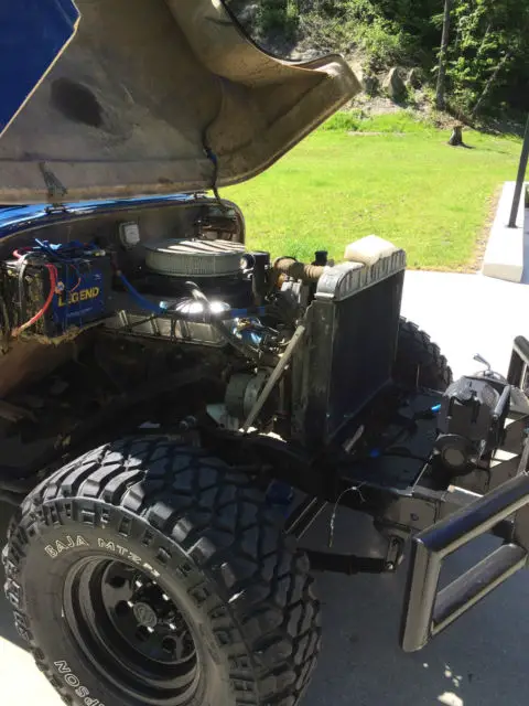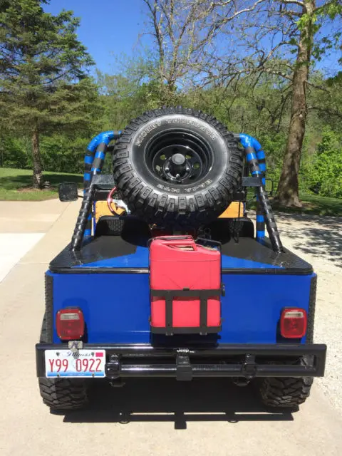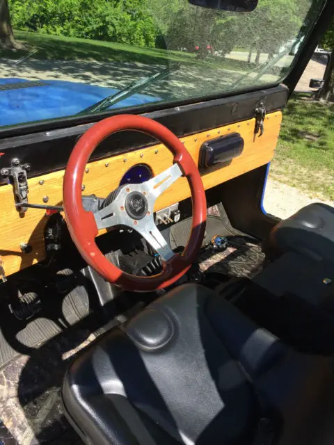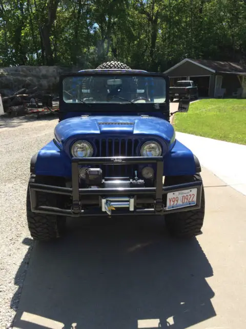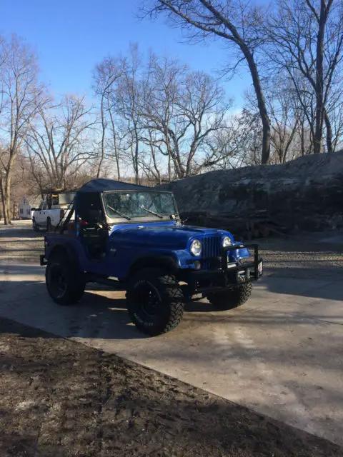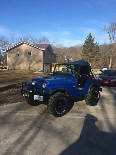 !972 Jeep Renegade CJ 5. 304 V-8 Headers and glass packs exhaust, 3 speed manual trans. Jeep has all fiber glass body custom dash with all in one gauge LED cluster. Here is all that was recently done over last winter. I converted manual steering to power steering. All heavy duty tie rods and joints, Steering Stabilizer. Has all new brakes and drums, 2"wheel spacers. New Steel wheels with 33" Mickey Thompson Tires and matching spare. All fresh tune up, filter, fluids,Clutch Kit, diff oil change, U-Joints, Trans Seals, Valve cover & Gaskets, Thermostat, V-Belts, 20 Gallon Fuel Cel, Fuel lines, Custom Aluminum work, new seats, Ken wood Bluetooth stereo, Pyle powered subwoolfe, CB Radio, custom Bumper, 12,000 lbs. wench, Battery and cables, battery disconnect, Leather Bikini Top, Hor, Fire Ex., center console,new leaf spring perches, bushings, greaseablepins.