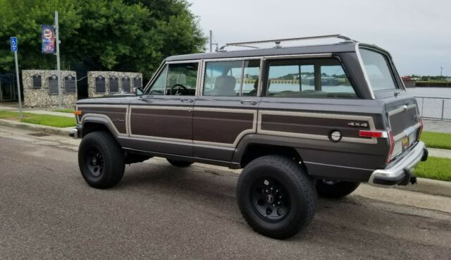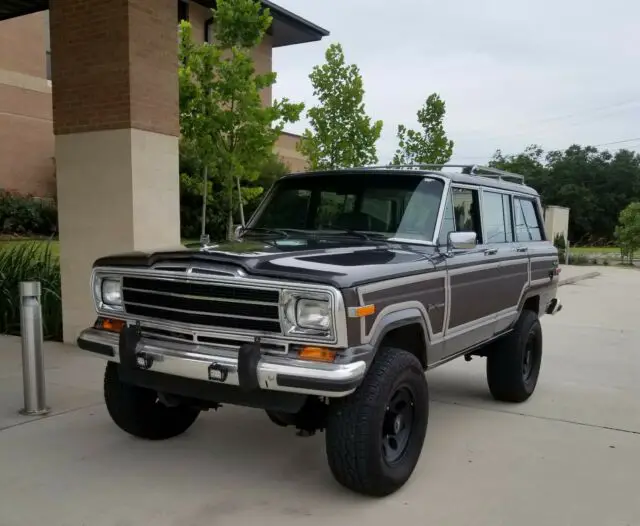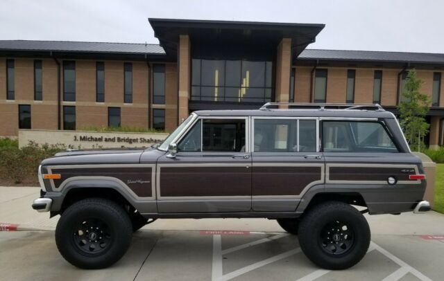 1990 Jeep Grand Wagoneer 4x4 Restored by Moonlight Rod & Customs . It has an AMC 360 V/8 with new edlebrock 4 bbl Intake and car, and dress up kit . Fully loaded pwr seats pwr windows etc. 6" suspension lift from rough country, new 17x9 wheels and tire, new paint . Custom wood grain . New custom seat upholstery . Drives like a dream . Asking $25,000 ob, trades considered . Whatcha got ?