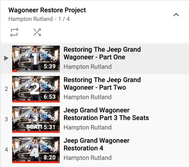This is a fully restored 1987 Jeep Grand Wagoneer. It is in great condition, and drives without issues. Cold AC. I have a 4 part series on youtube I made on the restoration process. I will try to include the link, but I'm not sure bay allows that. If not, just search "Restoring the Jeep Grand Wagoneer" here is the link: https://youtu.be/0MjwErfALcEThe back window rolls down but the key mechanism is missing, you can just stick a flathead screwdriver in the slot and turn it to make it roll down. That's the only unrestored part of the vehicle. Too much done to list, its all there in the videos. I'm downsizing and it breaks my heart bu I have to let her go. My loss is your gain!