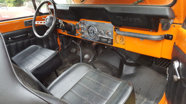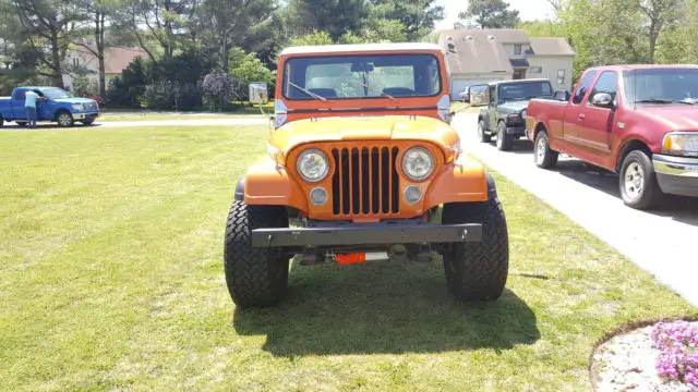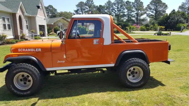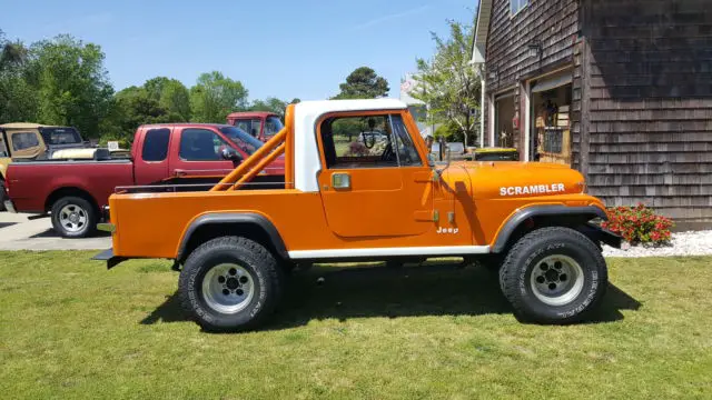 1983 Jeep Scrambler -CJ8 I have owned this jeep since the 1990s but haven't had it on the road for around 10 years. It has a nearly complete restoration over the last year or so but I'm out of time and patience. 1.) Engine: everything that bolts on the engine has been replaced. Weber Carburetor, starter, solenoid, valve cover, alternator, thermostat, freeze plugs, belts, hoses, plugs wires and all fluids are new. 2.) Body is straight and in very good shape. it had one dent under the passenger door that was repaired professionally The paint is the 2015 Hemi orange, decals are aftermarket. I have the original scrambler badges for the sides which are included. The hood, windshield frame and both front quarters are heavy gauge fiberglass as well as the bulkhead, I have not sealed the bulkhead in because i wasn't sure if i wanted to use the fiberglass or the original. The original need a little work on the bottom, but has been painted and is definitely usable as is (also included) The doors are in great shape and have had the seal and all rubber replaced in them.All hinges, mirrors, door and hood hardware etc. has been replaced with stainless steel. 3.) Frame is in very good condition with no welds or repairs. All body bushings, shocks etc. have been replaced. 4.) The steering box has been replaced, bushings on steering components have been replaced, It will need a front end alignment. 5.) Interior: New seats, new seat belts, new indicator light and pulls. All lights work as the should. Stock AMC am/fm radio works well. Jeep needs a new speedo cluster. It has a new gas tank sending unit, speedo cable and emergency brake cable but the emergency brake light stays lit and the rest of the cluster is dead. I have a severely bad back or I would have already replaced it..I just can't. The interior of the hard top also need to be painted. That's about it I think. Its a good old jeep. Pump the gas a few times and she starts every time. May have to repeat it if shes been sitting for awhile. It will need to be towed or trailed it runs well enough to drive around my neighborhood but not open road worthy yet. I have put an absolute ton of money into this jeep. My health is not going to allow me to finish it, so my loss is your gain.