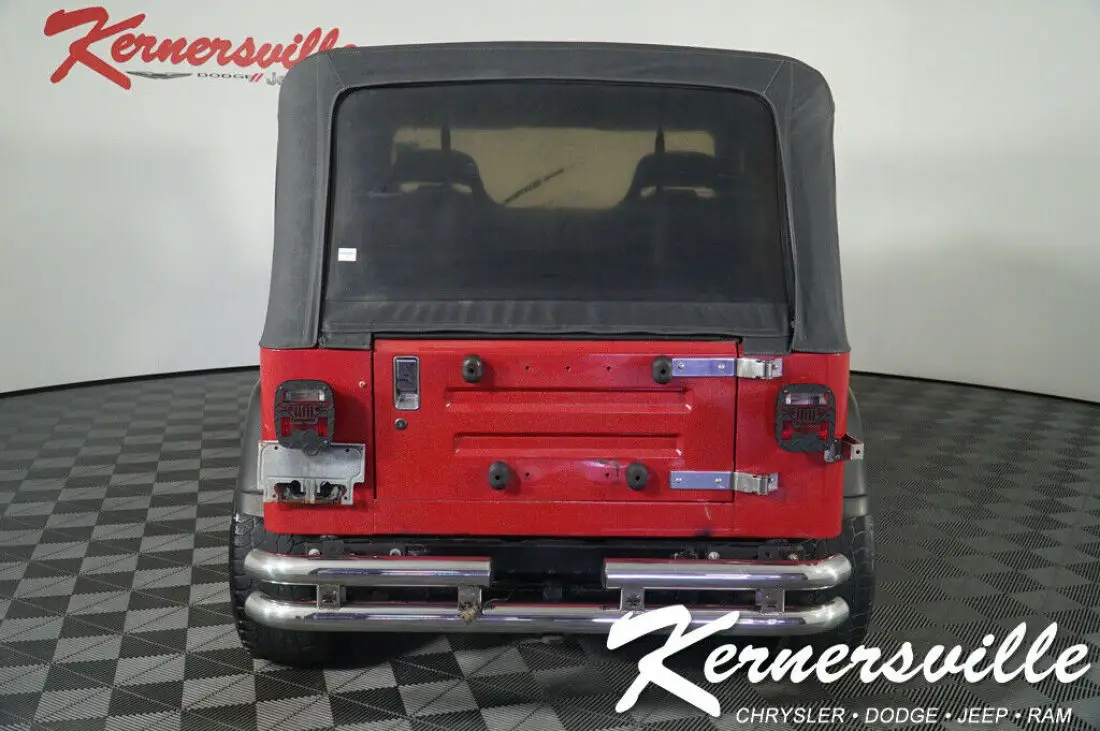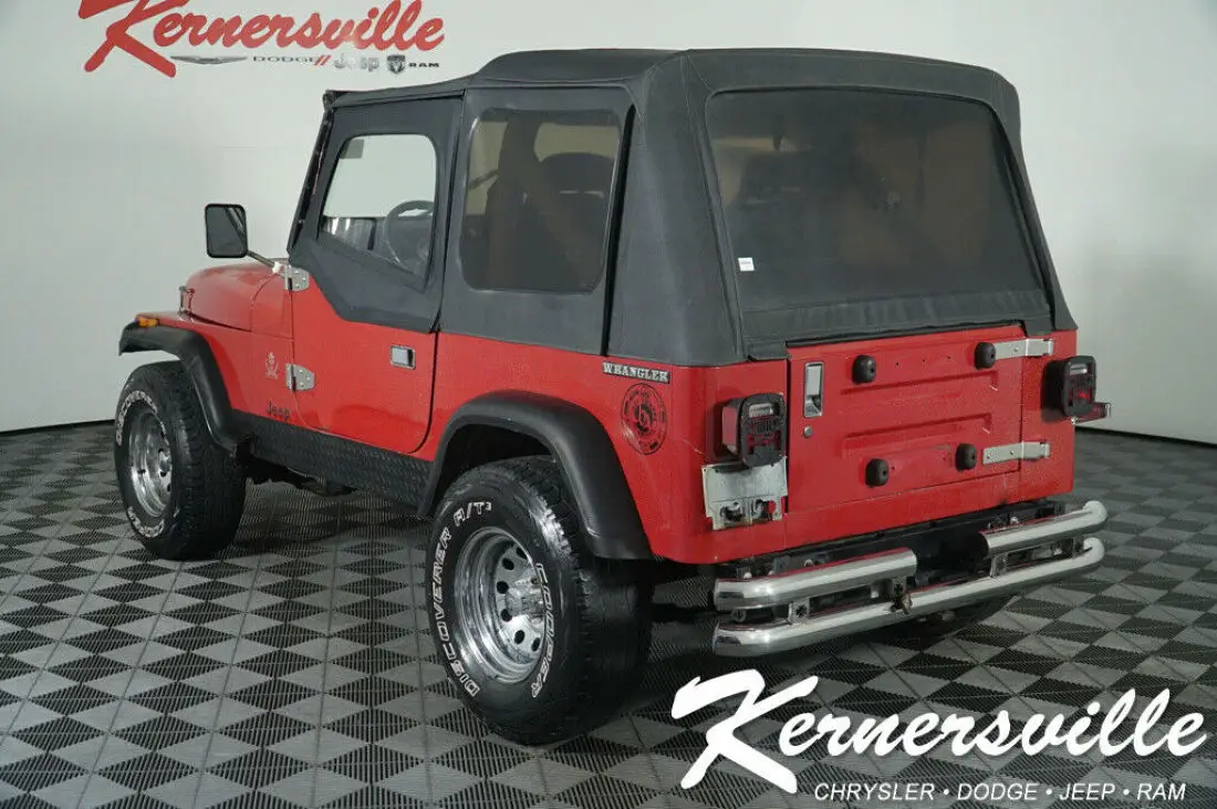 ******************************************************************************************* When calling or emailing, please reference stock number 191519CC.MORE ABOUT THIS 1988 Jeep Wrangler SUV LOCAL TRADE! This 1988 JEEP WRANGLER 4WD IS EQUIPPED WITH A 4.2L I6 engine, manual transmission, vinyl seats, soft top, auxiliary input, light bar and 178,379 miles. Warranty Overview Sold as-is call us today and ask about our extended warranty options. Market Analysis Overview Coming Soon About Kernersville Chrysler Dodge Jeep Ram Kernersville Chrysler Dodge Jeep Ram is the LARGEST truck dealer in the Southeast for two years in a row. We have the largest selection of trucks and over 1900 vehicles in stock at all times. We aim to truly be the lowest priced in the market and we do so by price checking our inventory every day and dropping our price to remain in the TOP 3 LOWEST PRICED. Shop at the most convenient dealer in the USA, available online! Shop at Kernersville Chrysler Dodge Jeep Ram! Hablamos Espanol - llame hoy. Why Choose Us?In 2015 we sold over 6000 vehicles online and our customers, from across the US, never had to step foot inside our dealership! It was all handled via our eBay Sales Hotline and our remarkable Online Staff Professionals. Our eBay consultants are available to assist you with questions regarding virtual walk arounds, financing/credit approval, trade in valuations/offers, vehicle upfits/customizations, auto transportation and so much more.Don't forget to check back often, we stock over 1500 vehicle at all times & refresh inventory weekly. Each vehicle is listed with a CARFAX & AutoCheck report, both completely free to you!Read more below to learn why over 6000 customers chose us last year:Free Quote - Get it Shipped to Your door for LessOur auto transporter of choice is TM AIR, offering highly competitive shipping rates to all four corners of the US: request a shipping quote hereThis Vehicle is at the Best Online Price TodayOur online Professionals are equipped with high-end tools to complete their daily research and pricing. Comparable research is assessed across a 500-mi radius ensuring we remain one of the top three lowest priced in the market at all times. When comparing we take into account year, make, model, trim, mileage, and features as well as CARFAX condition. Compare us today & see for yourself!Click to Get Approved on this Vehicle in MinutesWhen it comes to financing we can normally meet or beat the rate you have (WAC). Give us a try; we are a full service dealer, and we deal with over 40 lenders and do all the heavy work for you. If you finance with us, we will collect all taxes and tags in your State and complete all the paper work for you. You can find our secure application here: finance application.Call to Get a Cash offer on Your Vehicle NowCall our eBay Hotline for a Site Unseen Trade-in Appraisal and we'll make you an offer over the phone. Make sure to have all basic information regarding your vehicle ready for our eBay team such as VIN, condition of the interior and exterior, tire tread and the vehicles history. Call our eBay Hotline listed above in red to get your offerLearn More about Kernersville DodgeWe are located in the heart of the Triad, between Greensboro, Winston-Salem, and High Point in North Carolina. We sell most of our vehicles online and are proudly the LARGEST heavy-duty truck dealer east of the Mississippi. We've sold to each US state and in the past year have sold and shipped over 6000 vehicles. We look forward to making you a part of our family!Review the Terms Before BiddingFor all used vehicles, out-of-state buyers are responsible for all State, county, city taxes and fees, as well as title service fees in the State in which the vehicle will be registered. All taxes and fees must be paid in full in order for vehicle to be titled and registered. We are required to charge ALL customers a documentation fee of $699.50.Please review the Terms of Sale below before placing your bid or making an offer. While every reasonable effort is made to ensure the accuracy of this listing, we are not responsible for any errors or omissions contained on this page. Please verify any information in question with Kernersville Chrysler Dodge Jeep Ram prior to bidding!