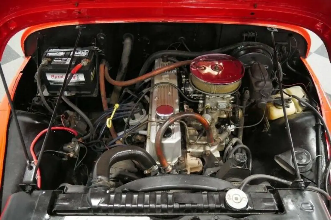 Under the hood is the period correct 258 cubic-inch inline-six motor. It's a hardy Jeep motor, and this example shows respect and care over the CJ's lifetime. It has a newer battery, alternator, carb, distributor cap, and rotor. So it firers up with an eagerness that will make you love this Jeep. The two-speed 4x4 transfer case and 15-inch American Racing Outlaw wheels with deep tread tires make for a nice off-road package. Plus, the power steering and power brakes with discs up front are great for in-town ease. And the five-speed manual transmission is the perfect partner no matter if you want overdrive highway cruising or need to take full control out on the trail.