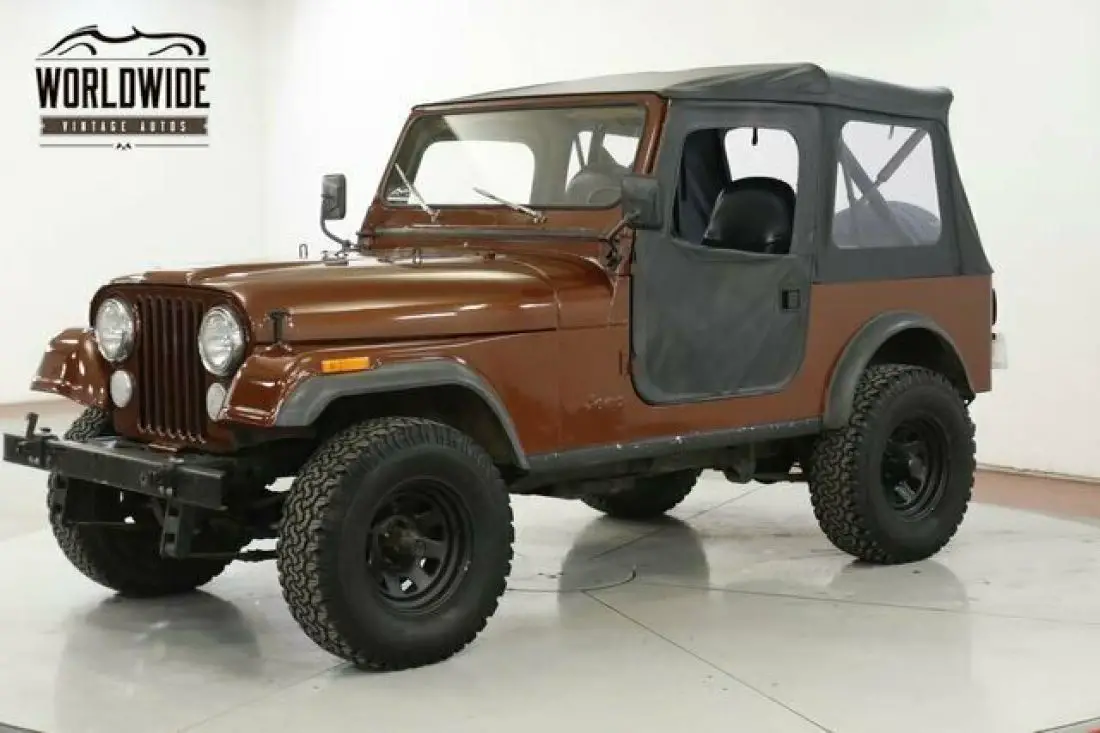 Interior Black Vinyl Front Bucket Seats Rear Vinyl Bench Seat 5-Speed on the Floor 4x4 on the Floor Exterior Gold Metallic Paint Black Steel Wheels BFGoodrich T/A Radial Tires Full Size Spare Full Soft Top Full Soft Doors