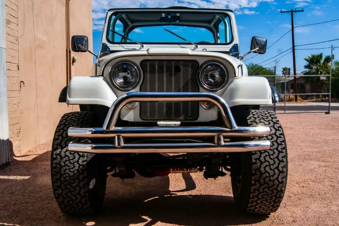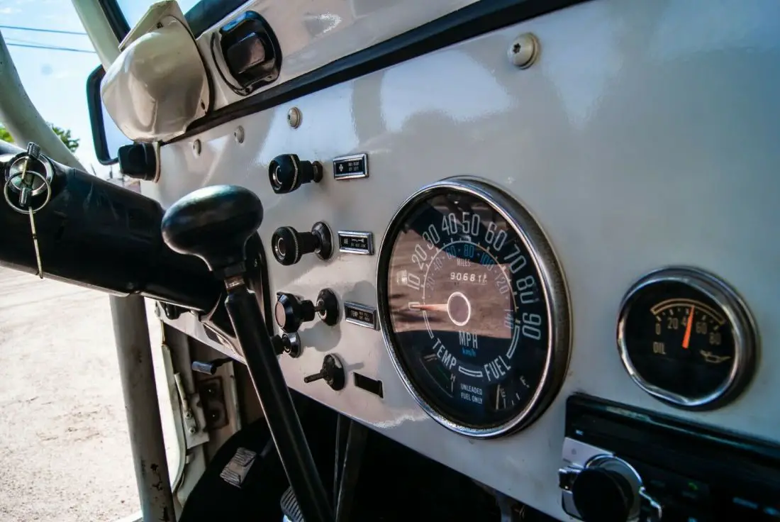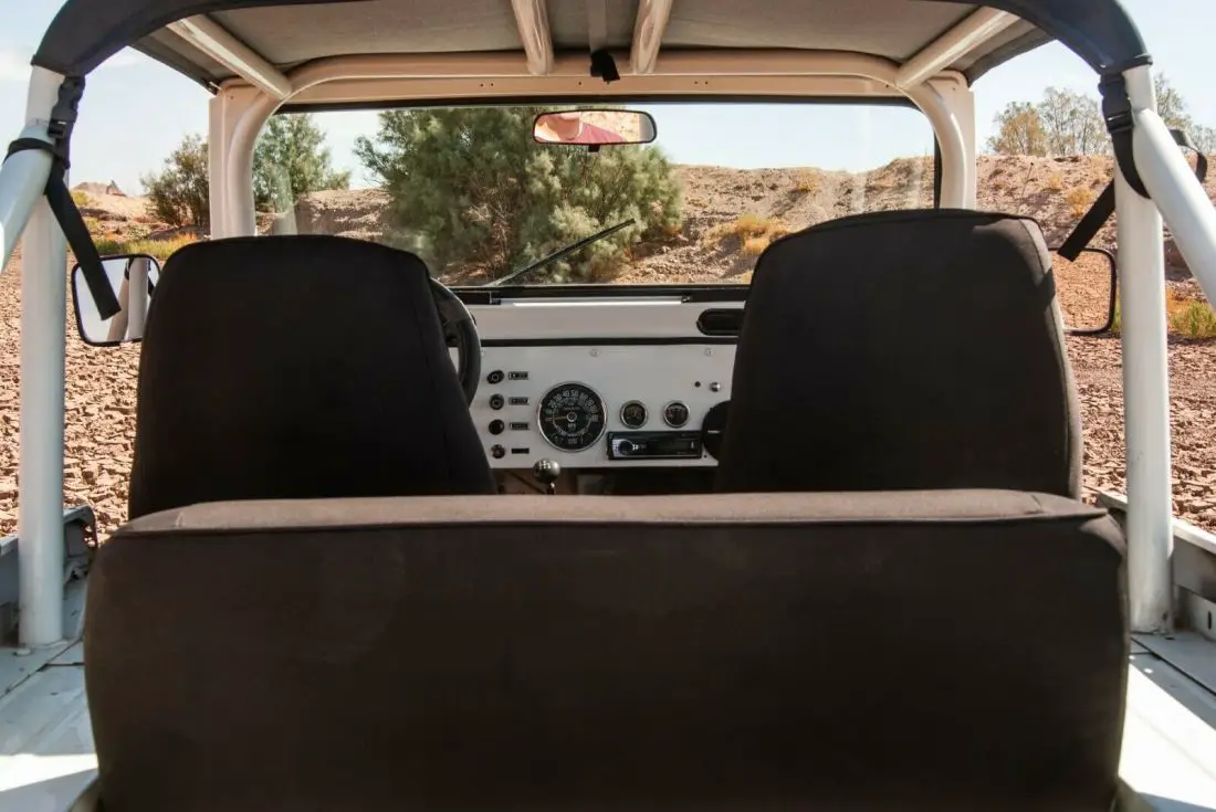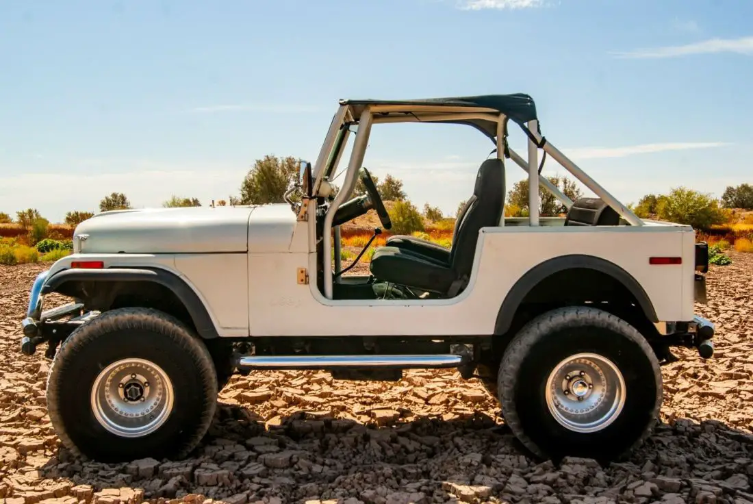 This Jeep has been in Arizona most of it's life. The previous owner had it for over 25 years. Mileage is believed to be original.Recent tune up and new Edelbrock carburetor. It starts right up and runs great. Does not smoke or leak. Goes thru all the gears without any grinding. The 4wd works like it should. Transfer case is smooth with no grinding or popping out. Black cloth seats, front and rear with no tears or rips. Black carpeting. Aftermarket MP3 player with remote. All lights, blinkers, wipers, etc work without issue. Speedometer works, oil pressure, and volt meter also are accurate and working. Heater and fan motor are in working condition.Runs great down the highway and the motor stays cool. No funny noises from drive train at all.