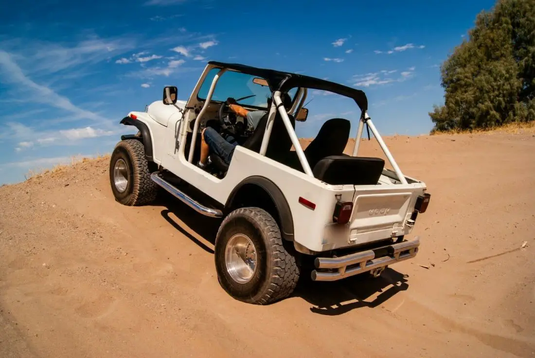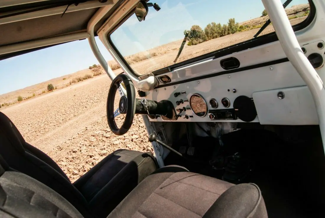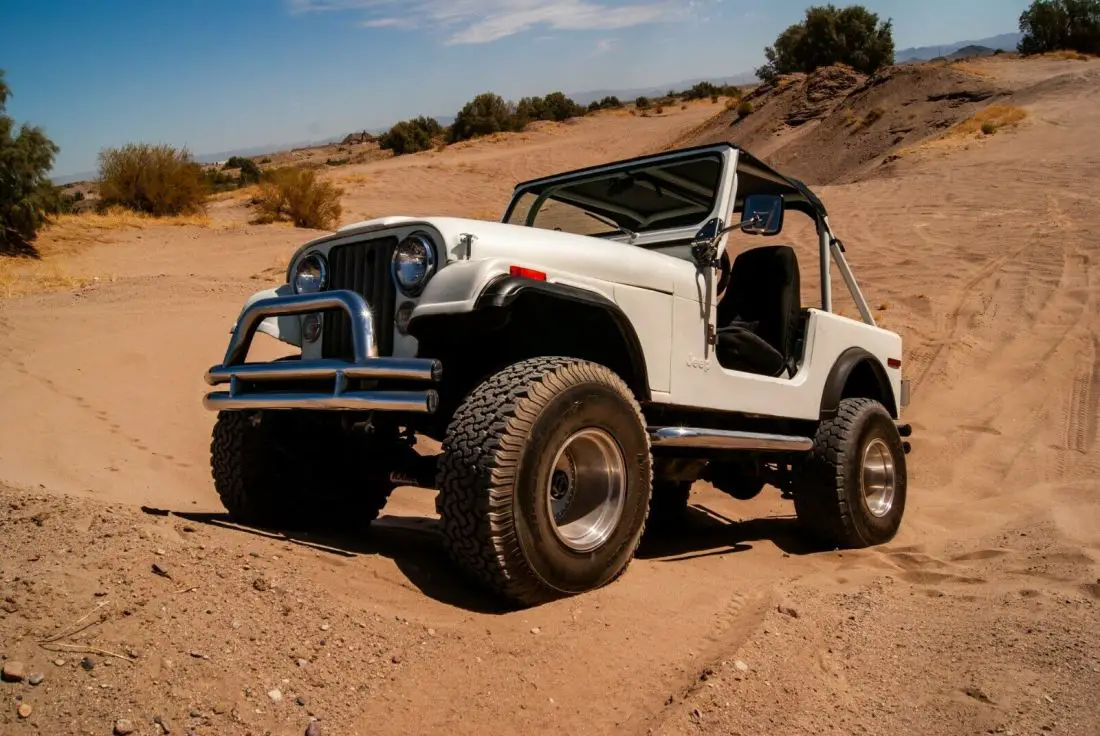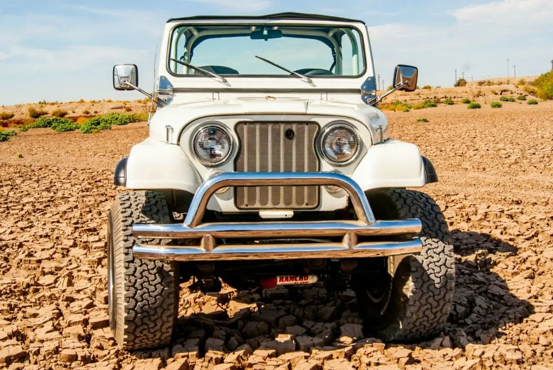 This Jeep has been in Arizona most of it's life. The previous owner had it for over 25 years. Mileage is believed to be original.Recent tune up and new Edelbrock carburetor. It starts right up and runs great. Does not smoke or leak. Goes thru all the gears without any grinding. The 4wd works like it should. Transfer case is smooth with no grinding or popping out. Black cloth seats, front and rear with no tears or rips. Black carpeting. Aftermarket MP3 player with remote. All lights, blinkers, wipers, etc work without issue. Speedometer works, oil pressure, and volt meter also are accurate and working. Heater and fan motor are in working condition.Runs great down the highway and the motor stays cool. No funny noises from drive train at all.