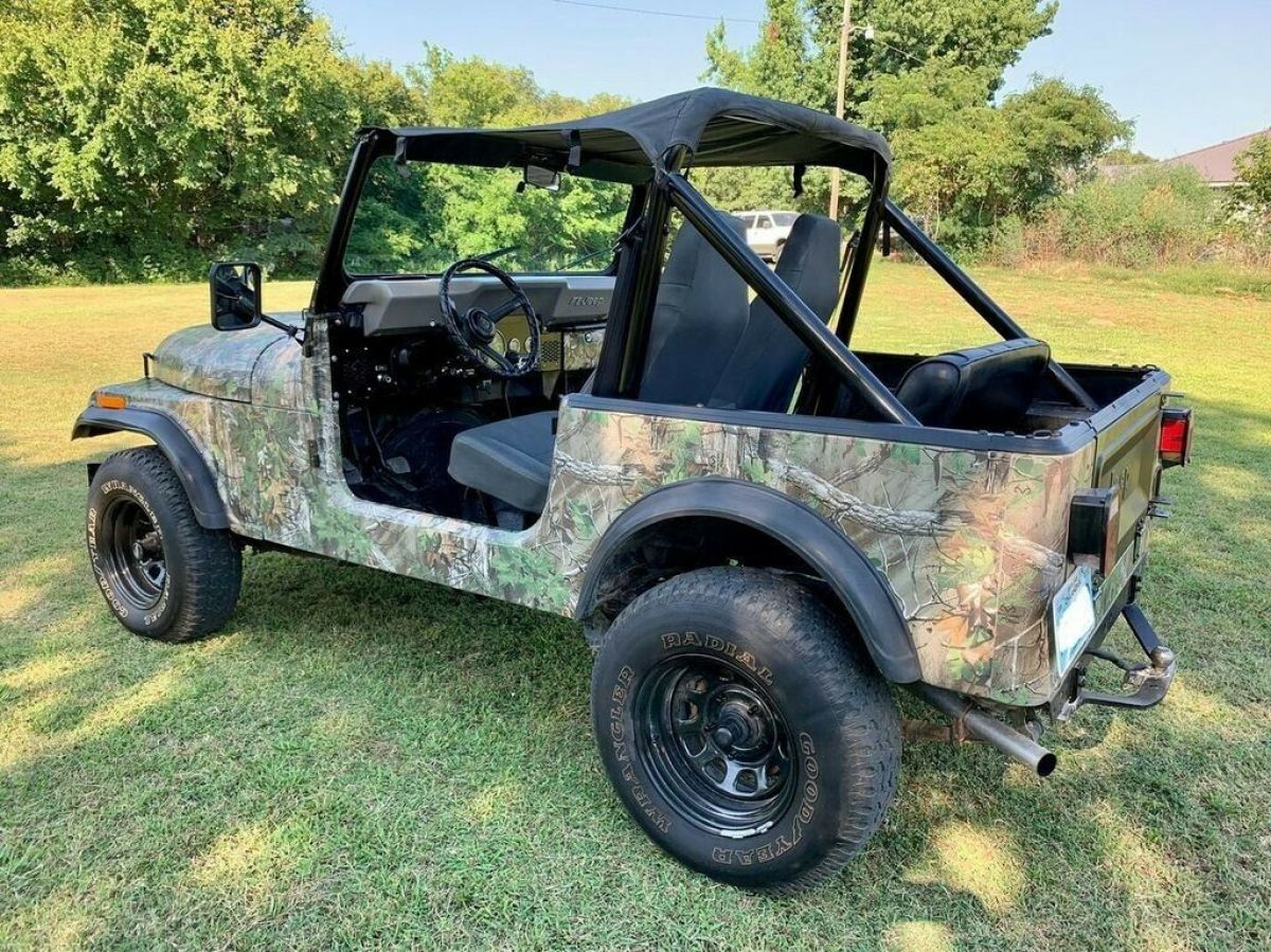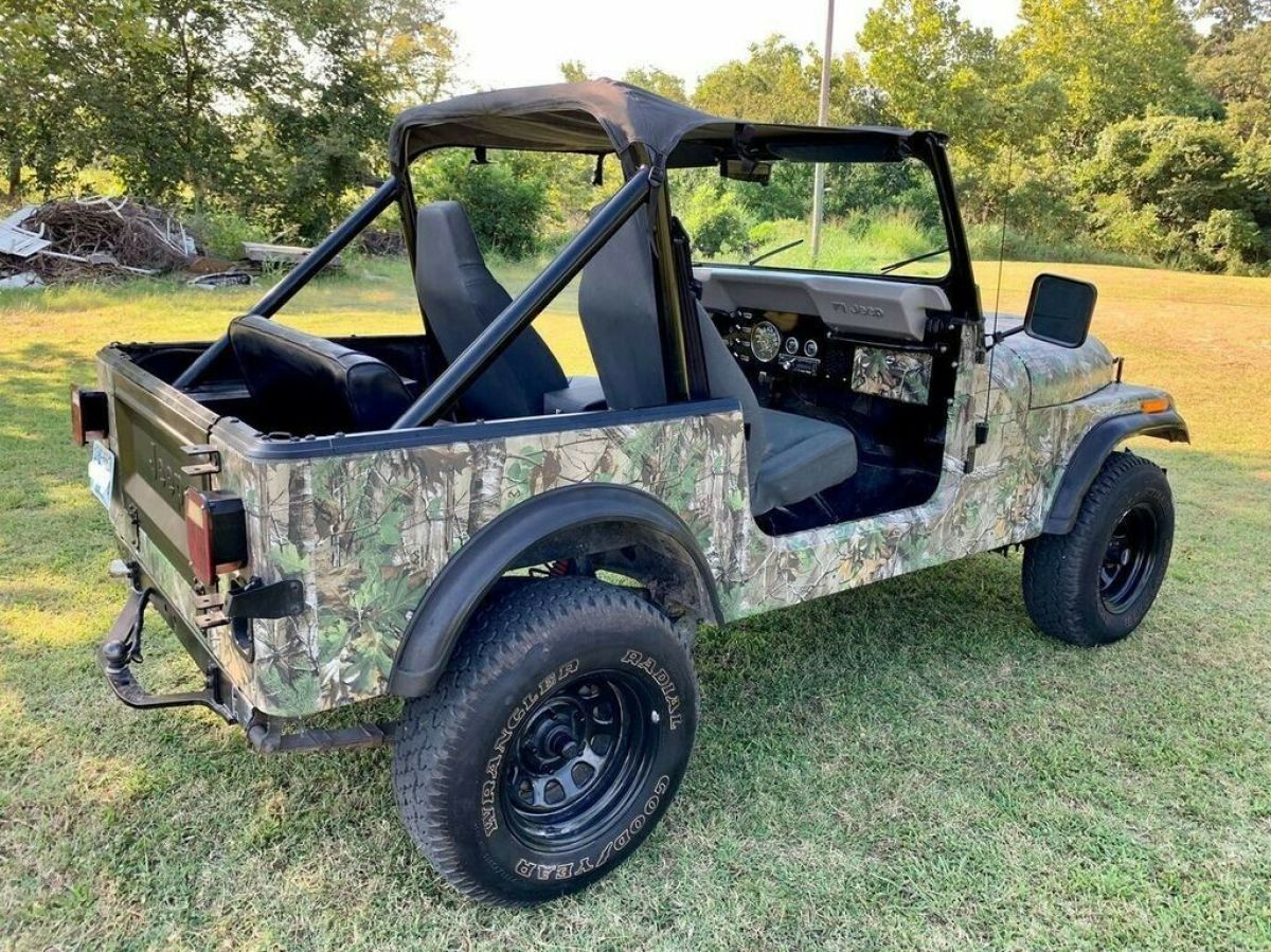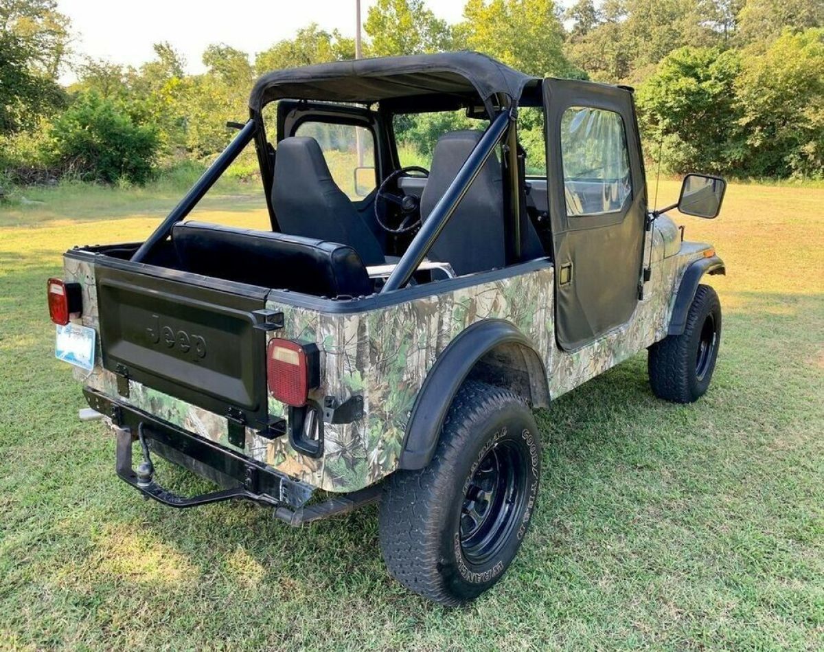 This 1984 Jeep CJ-7 has been restored and has a rebuilt motor with less than 500 miles on it. The body has 121000. It is equipped with a 2.5L, 4 cylinders and a 4 speed manual transmission. It has power steering, a new radiator, new fuel tank, new fuel lines, new carburetor, new wheels and tires, new front seats, new back seat cover, new doors. It has a Realtree wrap, fender flares, bikini top, spare tire and mount, 8000 lb Ramsey winch and an aftermarket JVC stereo with Bluetooth, USB and AUX.