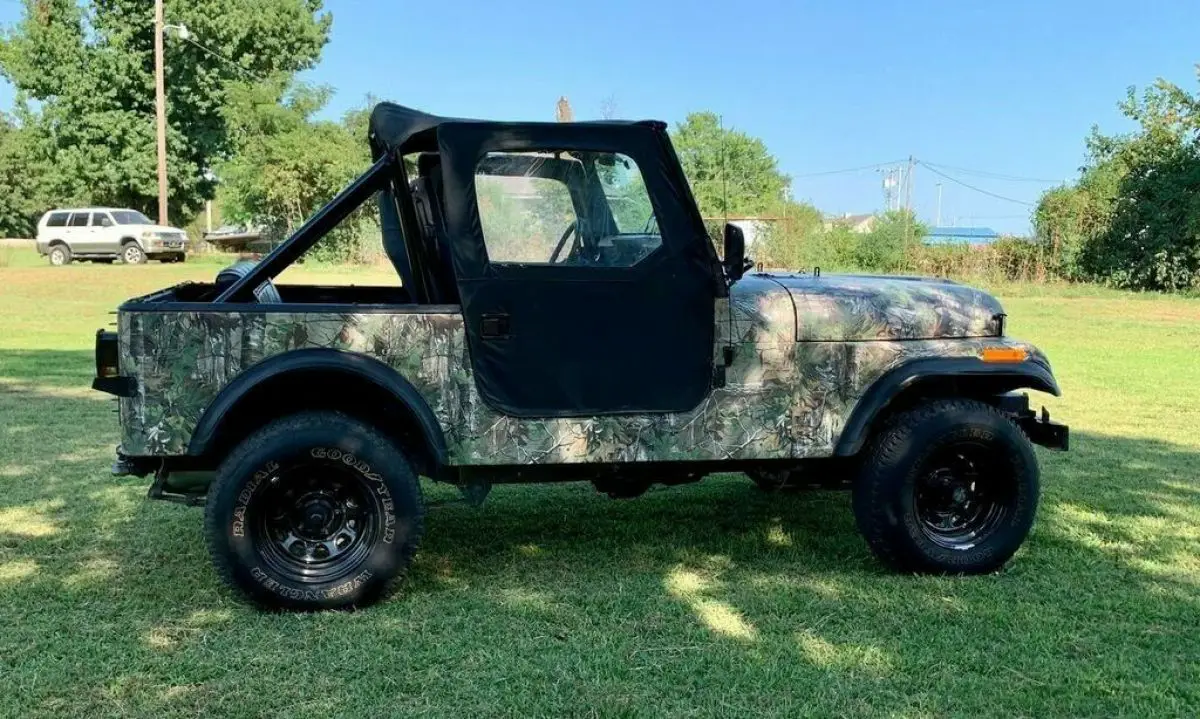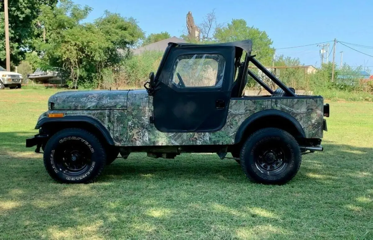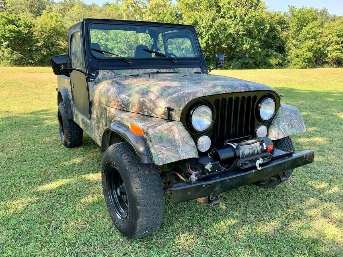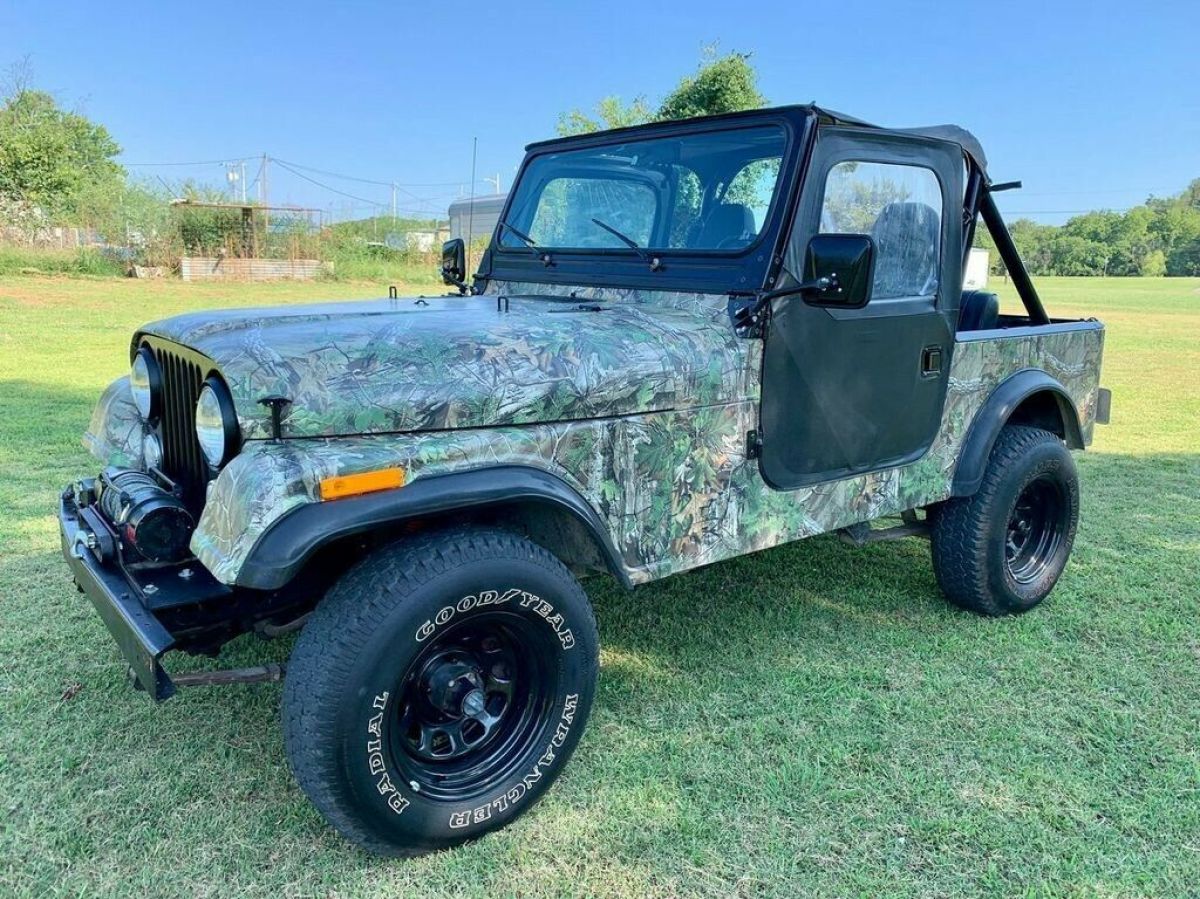 This 1984 Jeep CJ-7 has been restored and has a rebuilt motor with less than 500 miles on it. The body has 121000. It is equipped with a 2.5L, 4 cylinders and a 4 speed manual transmission. It has power steering, a new radiator, new fuel tank, new fuel lines, new carburetor, new wheels and tires, new front seats, new back seat cover, new doors. It has a Realtree wrap, fender flares, bikini top, spare tire and mount, 8000 lb Ramsey winch and an aftermarket JVC stereo with Bluetooth, USB and AUX.