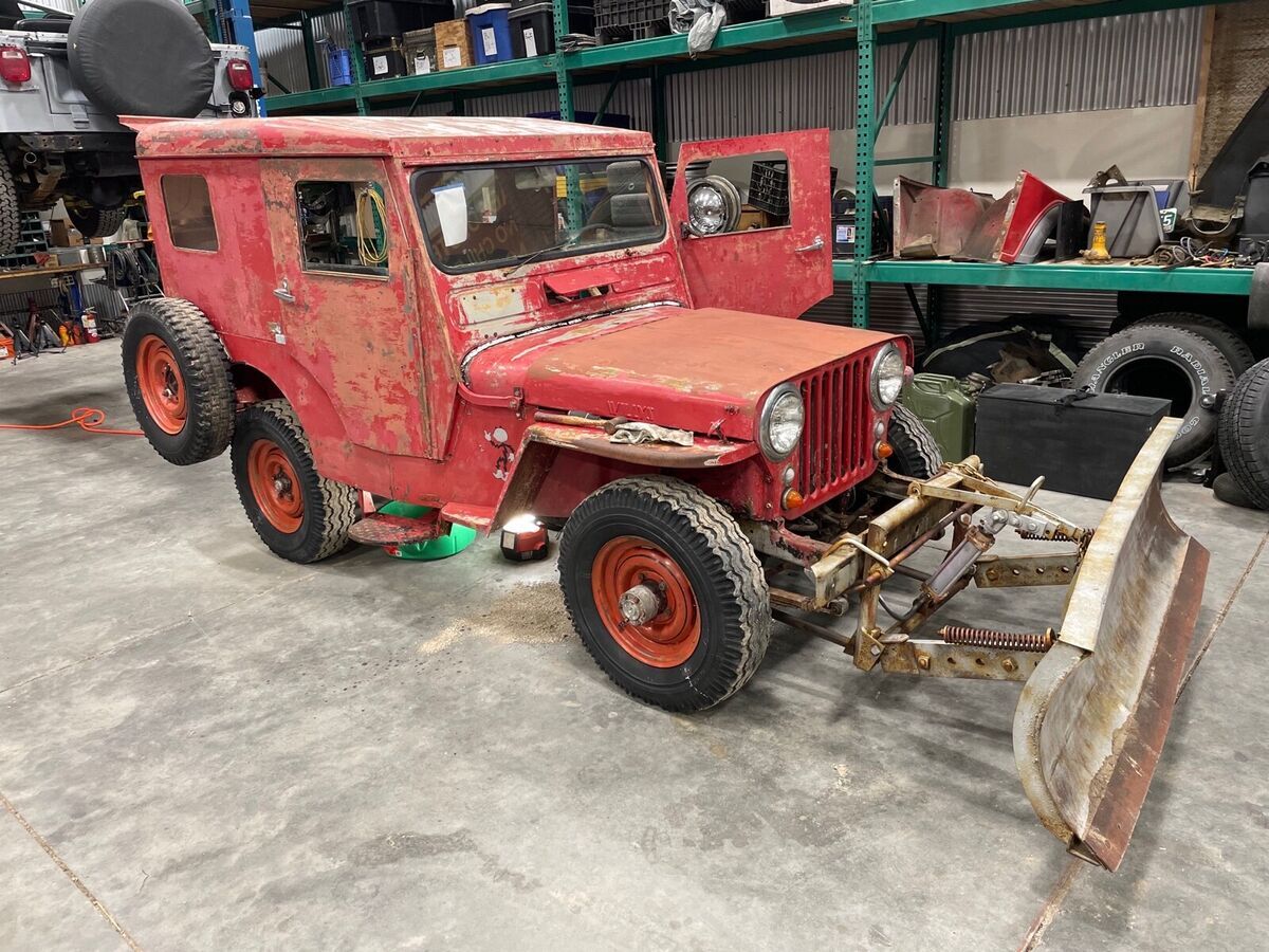 This is a 1950 Jeep CJ3A with a Koenig Iron Works hard top that has rear sliding windows and roll up on the doors all in proper working order, this Jeep is equipped with a 100% bolt on hydrolic snow plow with a 6’ blade that works as it should. Wind shield is not broken and all glass good with the exception of a crack in rear right glass. This vehicle is NOT rusty and very strait and original . Will provide pictures with the spots of rust it does have. This vehicle was meticulously serviced and well cared for!