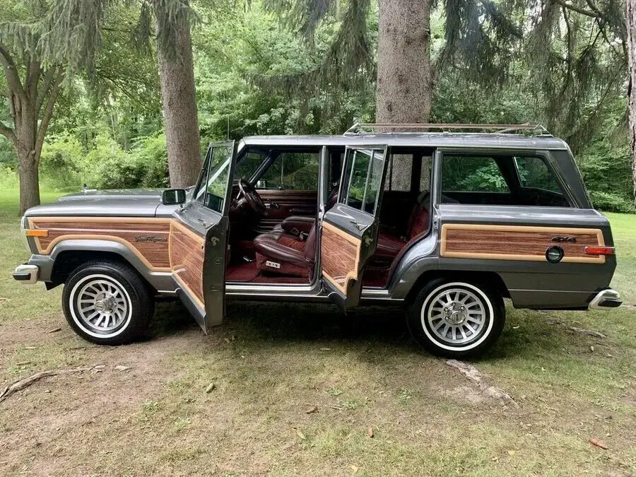 Grand Wagoneer by Classic Gentleman, internationally recognized as a leading buyer, restorer and seller of low mile, excellent condition Grand Wagoneers, presents this handsome Charcoal Grey Metallic. She is a returning Classic Gentleman alumni.