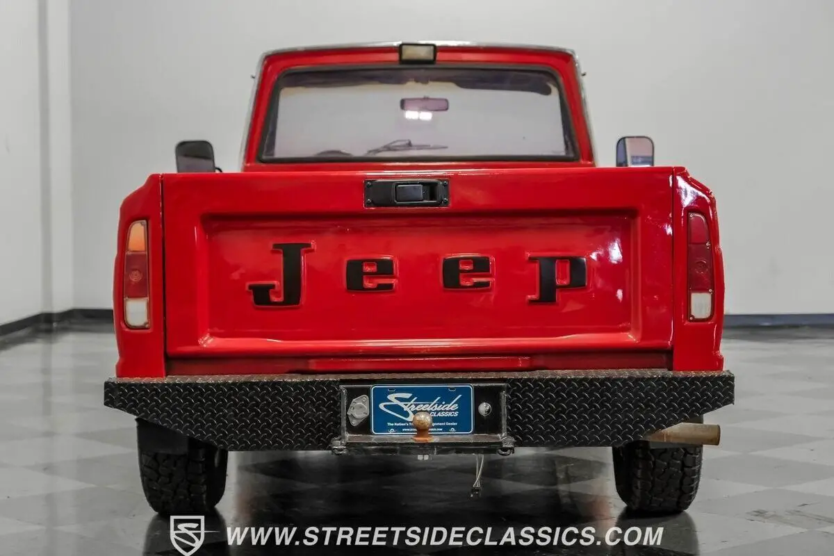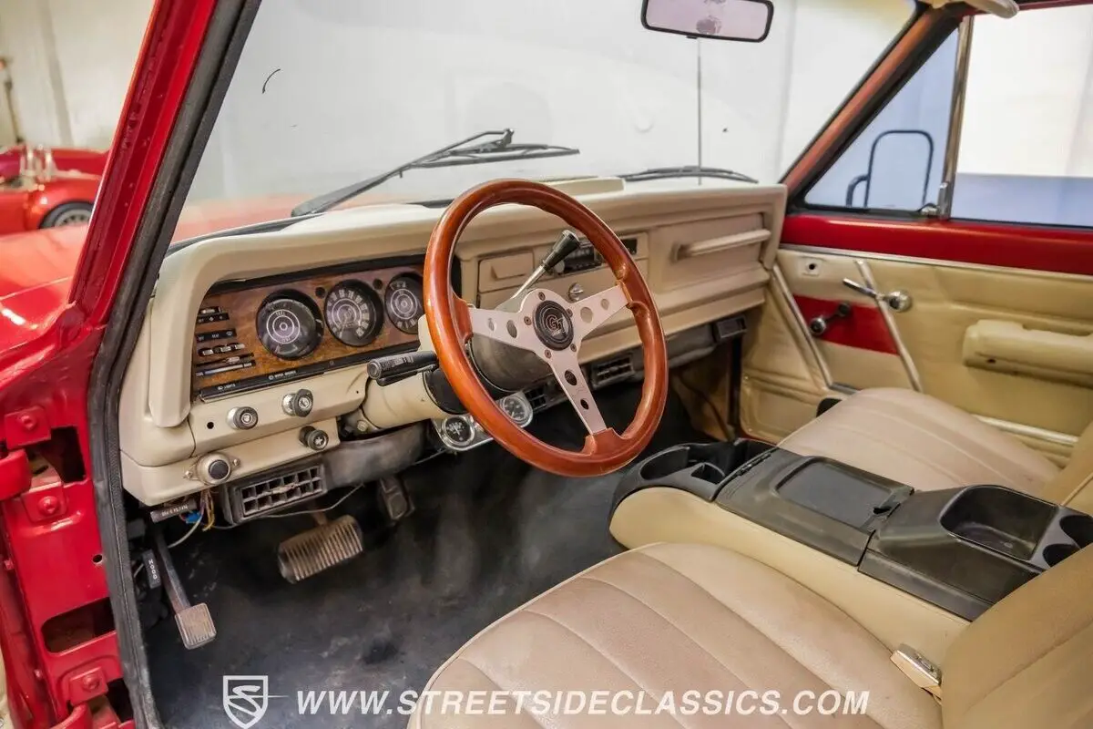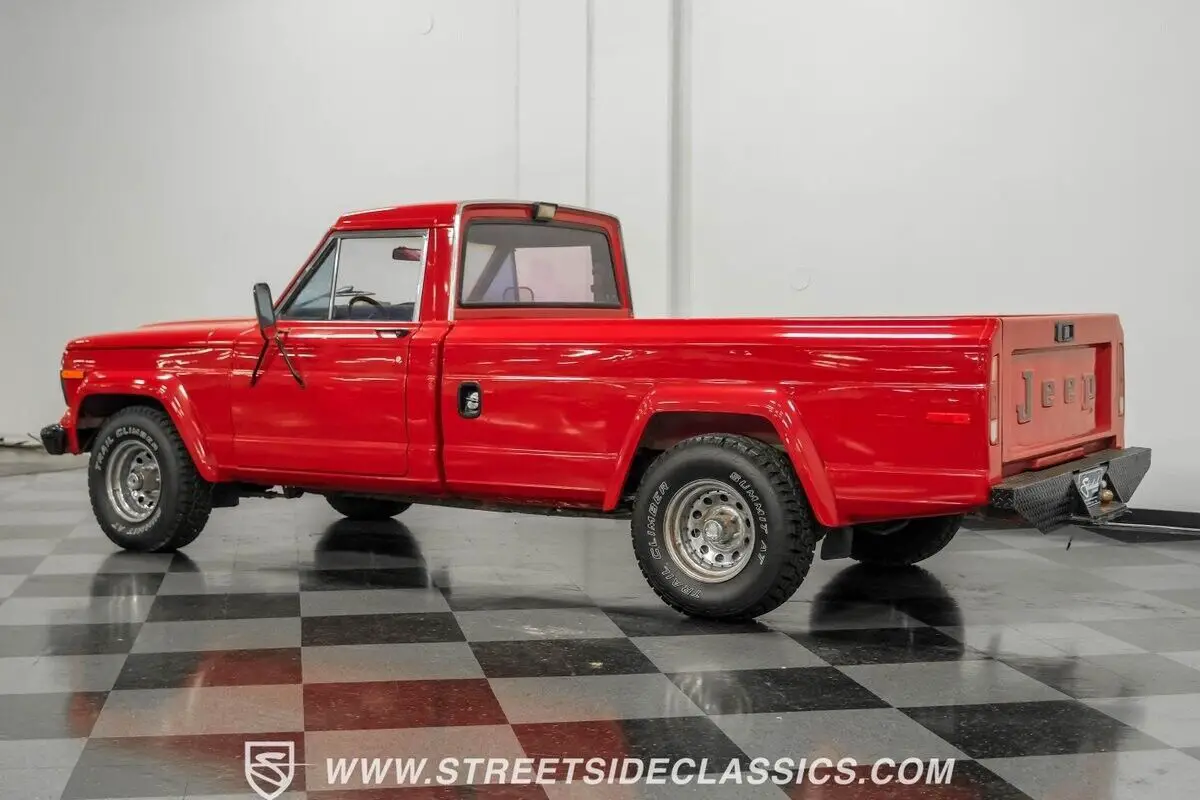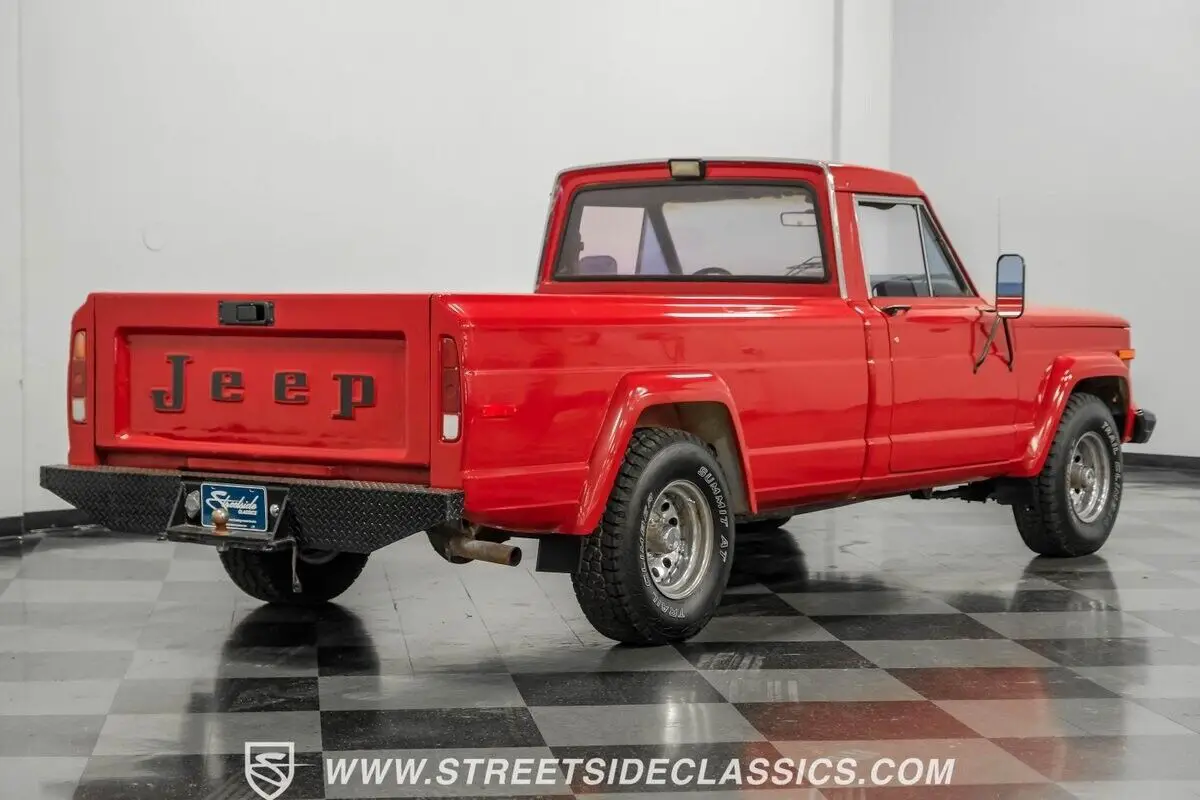 Built for conquering trails and tackling tough jobs, the legendary 1982 Jeep J10 4x4 pickup wears its red finish like a badge of honor. Squared-off lines and unmistakable Jeep presence create an imposing silhouette that means business without saying a word. The black-accented trim provides sharp contrast against the vibrant paintwork, while the rugged stance is elevated by 15" chrome wheels wrapped in aggressive 31x10.50R15 Summit tires from 2024. A powder-coated front bumper leads the charge, matched by a sturdy steel rear bumper with hitch ready for hauling duties. The practical bedliner protects the cargo area from whatever punishment you dish out, while tinted windows add a touch of mystery to this hard-working machine. Inside awaits a tan vinyl interior that balances utility with comfort. Bucket seats with a center console provide both support and convenience for long days on rough terrain. The Grant aftermarket steering wheel mounted on a tilt column puts control firmly in your hands, while additional under-dash gauges keep you informed about what's happening with your rig. When the summer heat hits, the functioning air conditioning keeps the cabin comfortable no matter how dusty the trail gets. The factory AM radio remains in place, preserving a piece of 1980s authenticity amid the otherwise purpose-driven cockpit. Rubber floor covering stands ready to take on mud, dirt, and whatever else your adventures might bring inside. Muscle comes courtesy of a 360 V8 engine that delivers the torque needed for crawling over obstacles or pulling heavy loads. The 3-speed automatic transmission makes for effortless gear changes when your focus needs to be on the terrain ahead. When the pavement ends, the 4x4 system with part-time transfer case engages to conquer mud, rocks, and loose surfaces with confidence. Cooling duties are handled by an upgraded aluminum radiator with electric fans, ensuring this truck keeps its cool even during low-speed off-road challenges. Power front disc brakes provide stopping ability, while solid axles with leaf springs at both ends offer the durability and articulation needed when the going gets rough. HIGHLIGHTS: • 360 V8 Engine • 3-Speed Automatic Transmission • 4X4 Drivetrain • Power Front Disc Brakes • Aluminum Radiator w/ Electric Cooling Fans • Solid Axle Suspension with Leaf Springs and Shocks • Powder Coated Front Bumper • Steel Rear Bumper with Hitch • 15" Chrome Wheels in 31x10.50R15 Summit Tires (2024) • Bedliner • Tinted Windows • Black Accented Trim • Tan Interior with Bucket Seats with Console • Grant Aftermarket Steering Wheel • Tilt Steering Column • Air Conditioning • Power Steering Born to venture where ordinary trucks fear to tread, this 1982 Jeep J10 4x4 combines brute strength with practical capability. The potent 360 V8, go-anywhere 4x4 system, and tough-as-nails construction make this truck an ideal companion for both work duties and weekend warrior missions. Call today!
