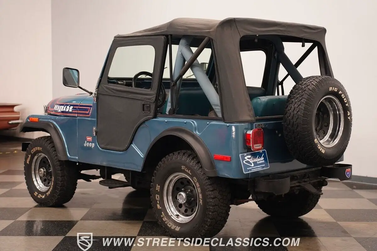 Vehicle Original VIN : J6M83EA079534HIGHLIGHTS: • 258 CI Inline-6 Engine • 4-Speed Manual Transmission • Leaf Springs w/ Shocks Suspension • Drum Brakes • Side Exit Exhaust • Sienna Orange Full Repaint • Blue Decals • 15" Wheels • 31x10.50R15LT Dick Cepek Tires • Removable Soft Top and Doors • Bikini Top by Bestop • Rear Mounted Spare • Blue Levi Vinyl Seats • Panasonic Stereo • Additional Speakers • Vinyl Flooring • Chiltons Manual • Miscellaneous Maintenance Records dating back to the 90s