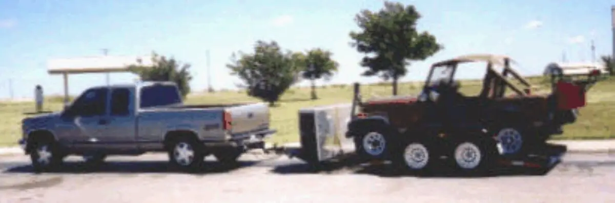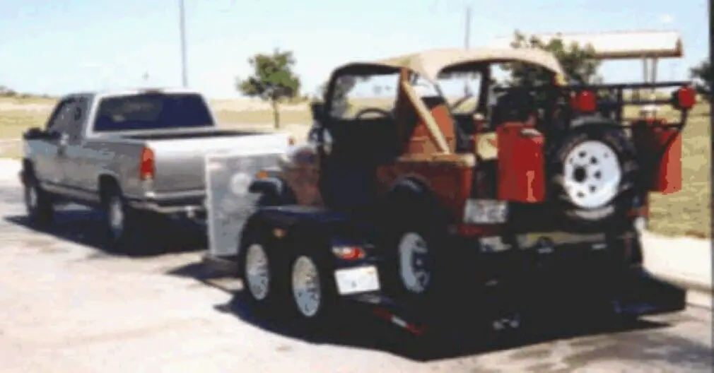 1981 Jeep CJ7 Laredo w/custom drive on trailer - no ramps needed. Chevy 350 TBI, computerized* Trans. 700 R4 OD* transfer case Dana 300* front axle Dana 30*rear axle AMC model 20, 8 7/8" ring gear, ratio 3.31, Locking diff. "CC code" 13.43* Heavy Duty tow bar*Fuel tank - 1992 Jeep Wrangler 15 gal tank w/electric fuel pump (it took me some 60 hrs. to rewire to the computer) Warn XD9000i 9000lb winch w/full accessory kit* Swing out jamboree rack/w two 5 gal. jerry cans* B&M truck shifter*bikini top*tonneau cover*factory locking steel doors, roll up glass*Bestop 1/2 doors*factory fiberglass top, w/glass sliding windows, glass rear hatch, sunroof*Dupont Imron paint -dk brown body, buckskin top*2 axle custom drive-on trailer w/ 2 large locking storage cabinets, 4 new BF Goodrich tires with spare*mileage 6581 since engine/trans.swap*this is a HUNTING MACHINE setup. Runs like a striped ape, climbs like a billy goat!