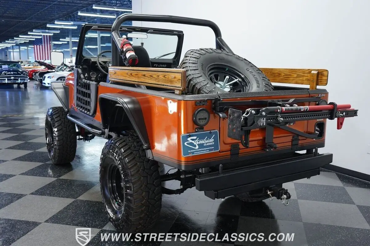 4653-TPA 1983 JEEP CJ8 SCRAMBLER HIGHLIGHTS: • 4.2L Inline 6 Engine • 2-Barrel Weber Carb • 4-Speed Manual Transmission • 4X4 with Manual Locking Hubs • Power Brakes • Standard Belt-Driven Cooling Fan and Radiator • Standard Exhaust Manifold • Orange Paint • Removable Hardtop and Bikini Top • Interchangeable Doors • Rough Country Front and Rear Bumpers • Badland ZXR Winch • Upgraded High-Intensity Headlights • Full-Size Spare Tire Mounted in Bed • Fire Extinguisher • Jack Mounted on Rear • Lifted Suspension • 35X12.50R15LT General Grabber All-Terrain Tires on 15" Rims • Black Vinyl Bucket Seats • Power Steering • Locking Center Console • Tilt Steering Column • Upgraded AM/FM Radio with Kicker Competition Speakers • Rhino-Lined Floor Pans with New Carpet