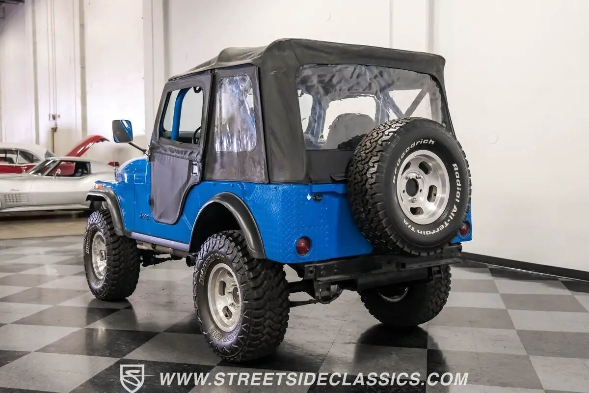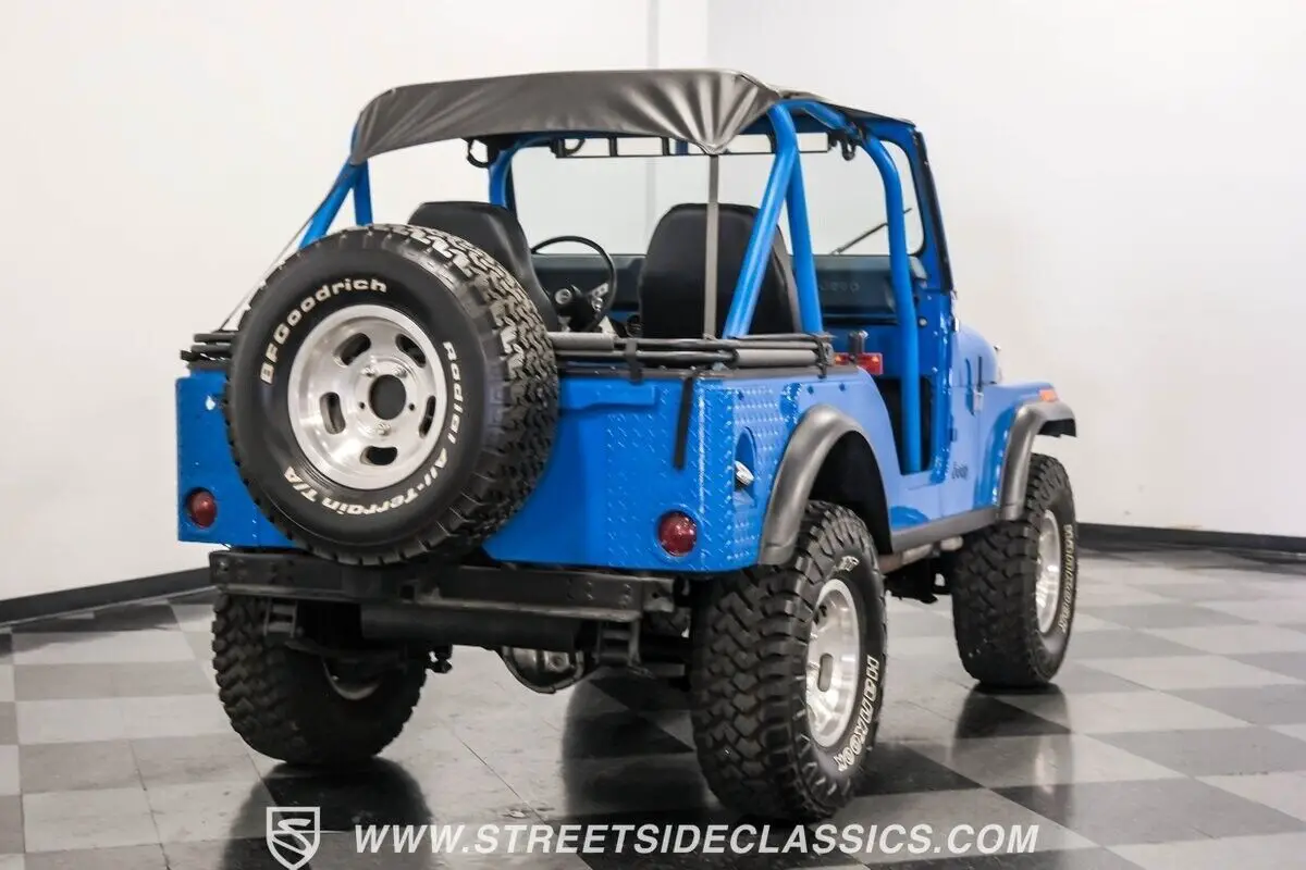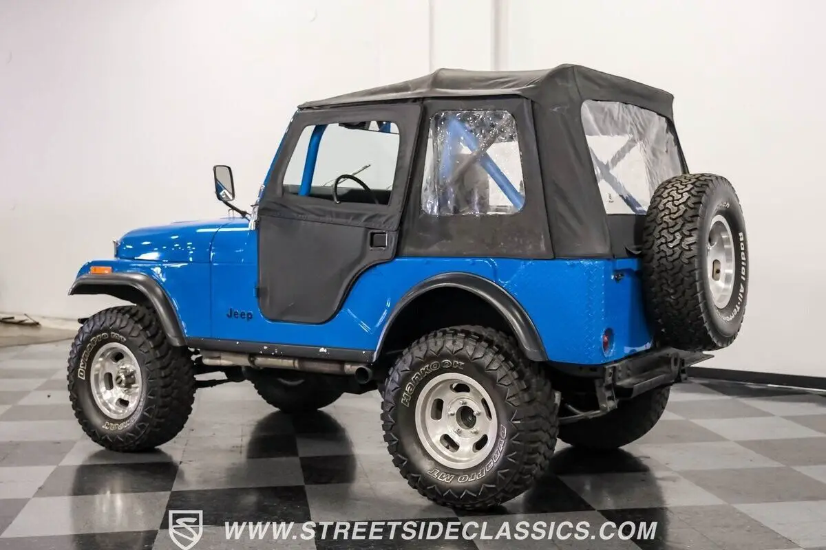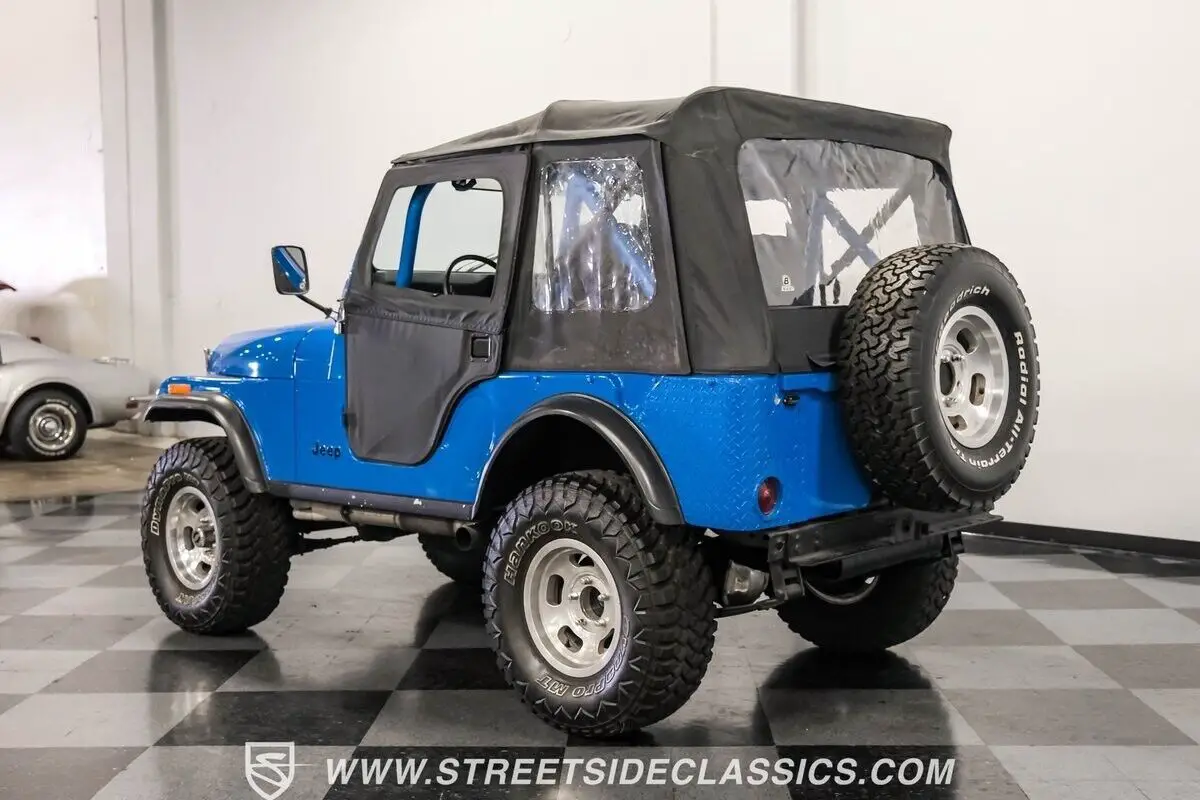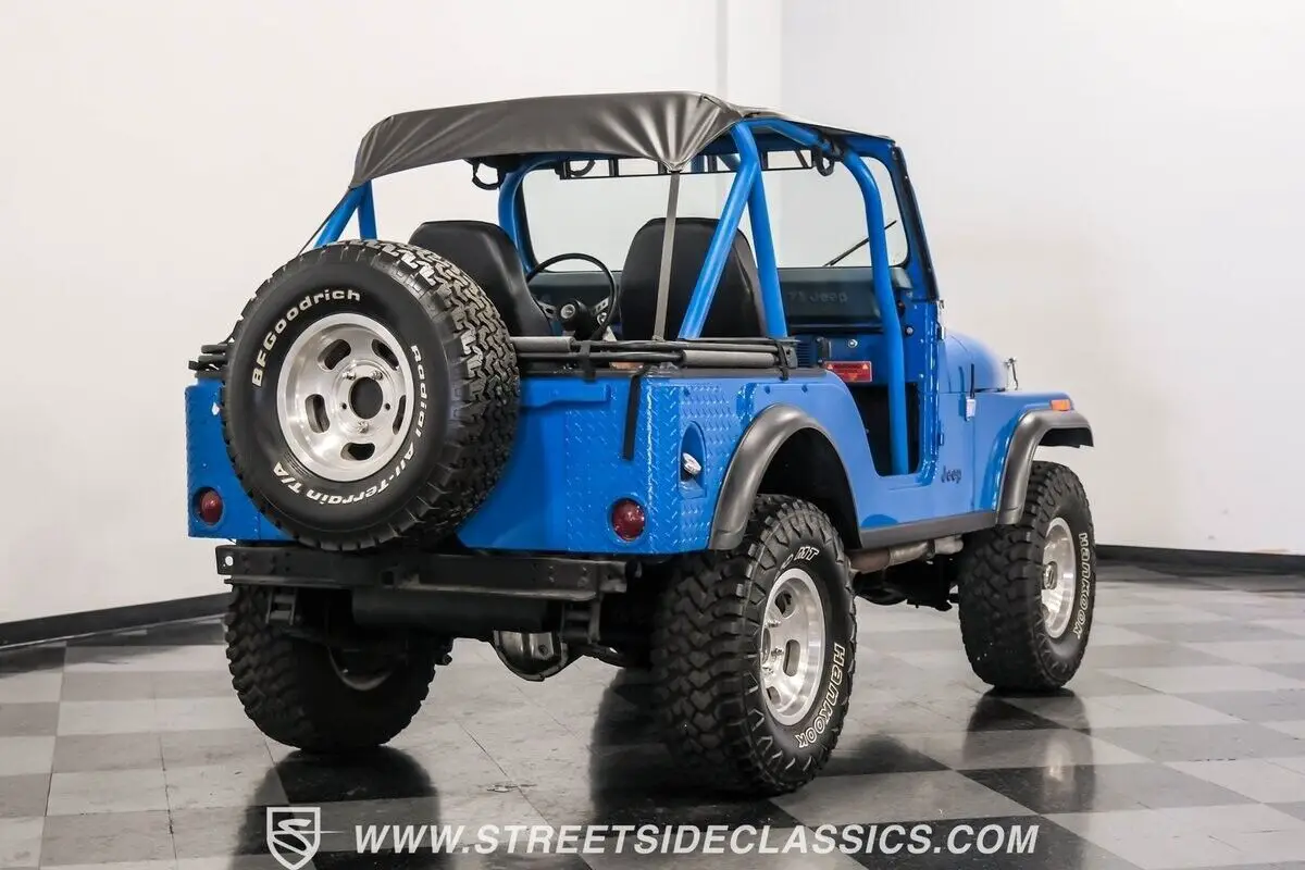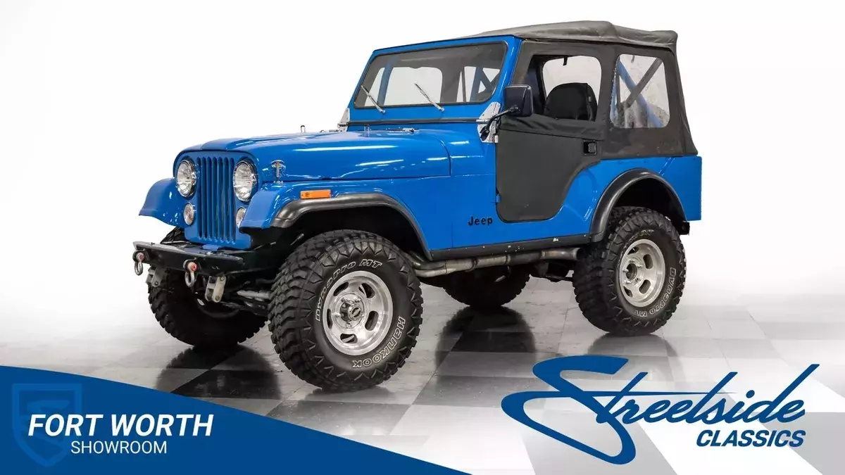 Vehicle Original VIN : J6F83EH011751Born for the trails and transformed for adventure, this 1976 Jeep CJ5 V8 wears a vibrant blue exterior that announces its off-road capabilities without saying a word. Previously a white Levi Package model, this CJ5 received a complete color makeover in 2016, giving it a distinct identity on and off the beaten path. Fender flares accentuate the muscular body lines while making room for those massive 32x11.50R15 Dynapro tires mounted on 15" slotted mag wheels. A steal front bumper with tow hooks adds both function and rugged aesthetics, while the side-exit exhaust system and spare tire mounted on the back complete the adventure-ready look. This Jeep also includes both a Bimini top and a brand new full soft vinyl top with doors from Best Top for all your weather conditions. The black interior creates a straightforward, no-nonsense environment built for adventure. TRS bucket seats provide solid support for those off-road excursions, while the center console offers convenient storage for essential gear. A full roll cage fabricated by Full Bore in San Diego adds both safety and structural integrity. Instead of a back seat, this Jeep utilizes a Smittybilt lockable cargo storage box, maximizing utility without sacrificing style. The dash remains clean and uncluttered, while large grab handles make entry and exit a breeze. Power steering allows for easy maneuvering over rough terrain, and the JVC stereo provides the soundtrack for your outdoor expeditions. A muscular 360 V8 engine powers this off-road machine, replacing the original 304ci powerplant with additional cubic inches and output. The motor pairs with a 3-speed manual transmission that puts control squarely in your hands. The 4x4 drivetrain features Dana 30 axles front and rear for proven durability on challenging terrain. Power steering and power brakes make handling straightforward even in tough conditions. Recent mechanical upgrades include a new alternator, voltage regulator, repaired wiring harness, rebuilt transfer case with new seals, new clutch and pressure plate, new brake booster, master cylinder, front and rear brake cylinders, and upper and lower engine gaskets. HIGHLIGHTS: • 360 V8 Engine • 3-Speed Manual Transmission • 4X4 Drivetrain • Dana 30 Front and Rear Axles • Power Brakes • Side-Exit Exhaust System • Blue Exterior Paint • 15" Slotted Mag Wheels in 32x11.50R15 Dynapro Tires • Bimini Top • New Full Soft Vinyl Top with Doors • Black Interior with TRS Bucket Seats with Console • Roll Cage by Full Bore San Diego • Power Steering • JVC Radio From mountain trails to desert adventures, this 1976 Jeep CJ5 V8 combines classic 4x4 capability with thoughtful upgrades that make it ready for action. With its powerful 360 V8 engine, dual top options, and plenty of recent mechanical work, this American off-road legend awaits your next expedition. Call today!