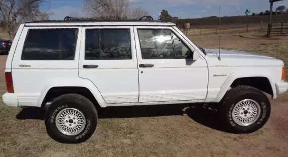 This 1992 Jeep Cherokee Limited Gold and White edition the truck is powered by a 4.0-liter inline-six high output engine linked to a four-speed automatic transmission and a dual-range transfer case. It is equipped with 15? aluminum original wheels, a roof rack, a rear wiper, air conditioning, cruise control, a cassette stereo, and power accessories. Recent service fluids and alignment and safety check. This Jeep Cherokee Limited now shows 170k highway miles and has never been used off road. I have owned it for 23 years and the last 8 years it has been in storage and driven just to keep it in good mechanical shape. The Jeep runs perfect it is all stock except it was slightly lifted for ground clearance for snow. This 92 Jeep Cherokee Limited is great shape it will be hard to part with. Bring a trailer or drive it across country your choice.