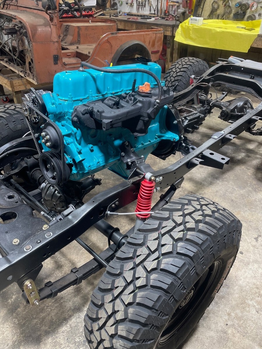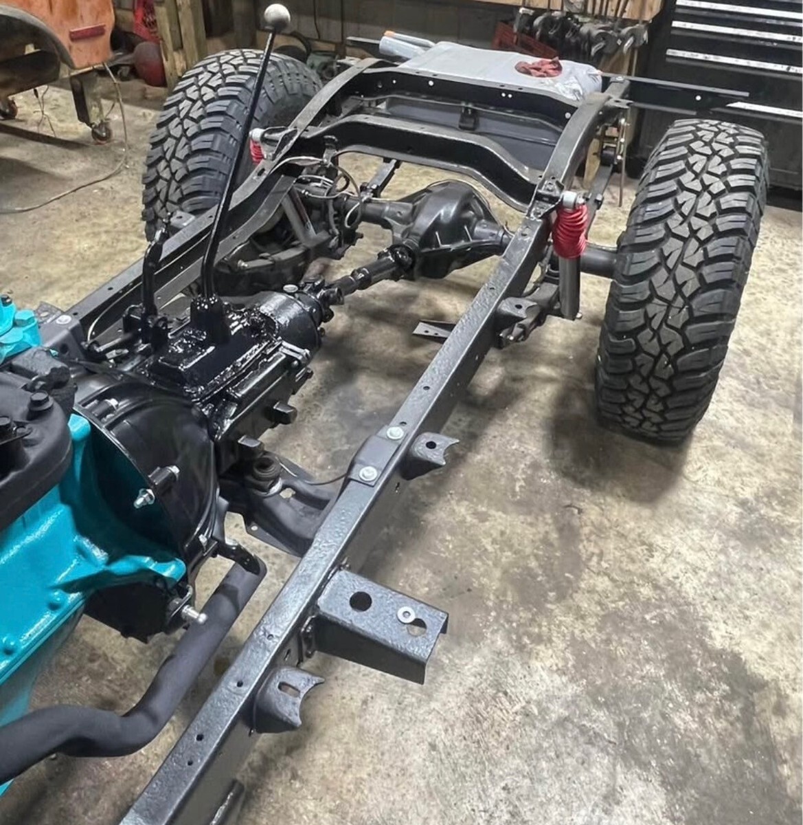 1975 Jeep CJ5. The easiest way to describe this chassis is EVERY bolt has been touched and everything is brand new or professionally rebuilt/ replaced with the best available quality parts. Part manufacturers include Moog, National, Timken, Skayjacker, Dana Spicer, Fish Bone engineering, General Tires, Crown Automotive and many more I’m sure I’m forgetting about. Most parts are from Quadratech or 4WP.