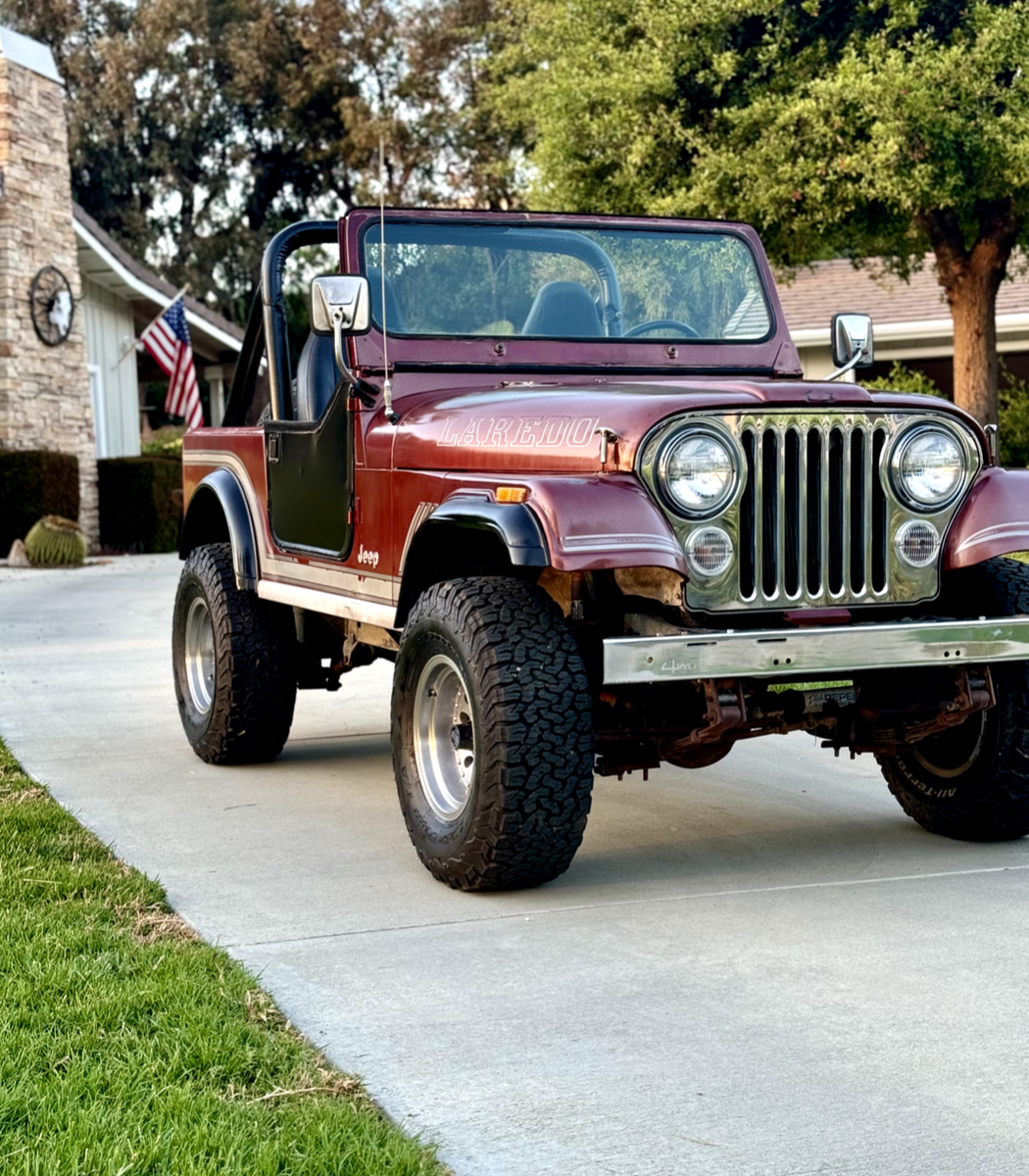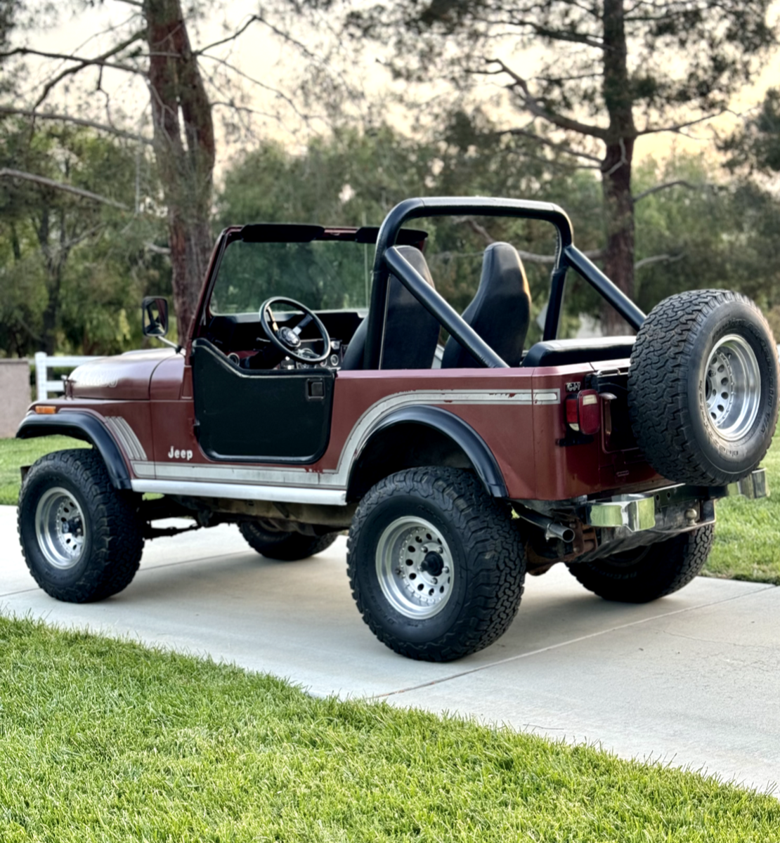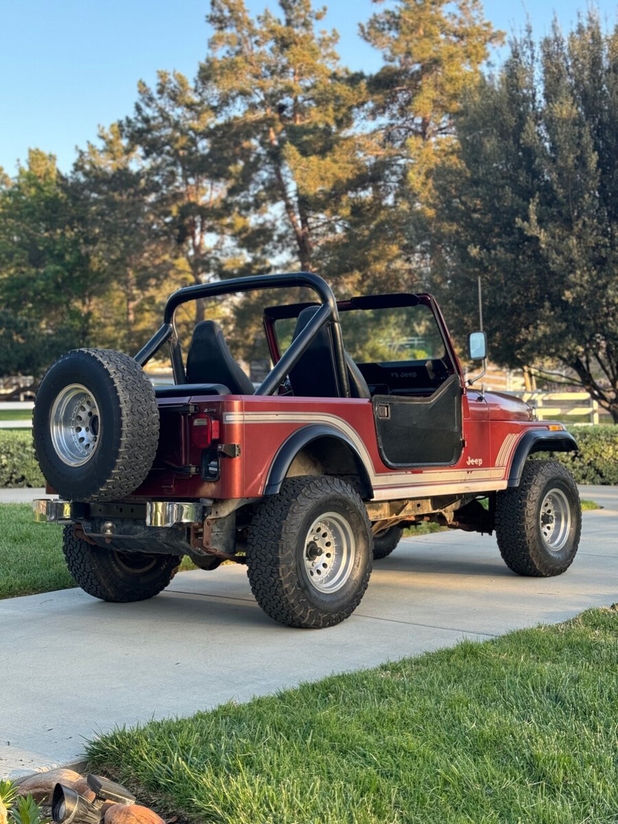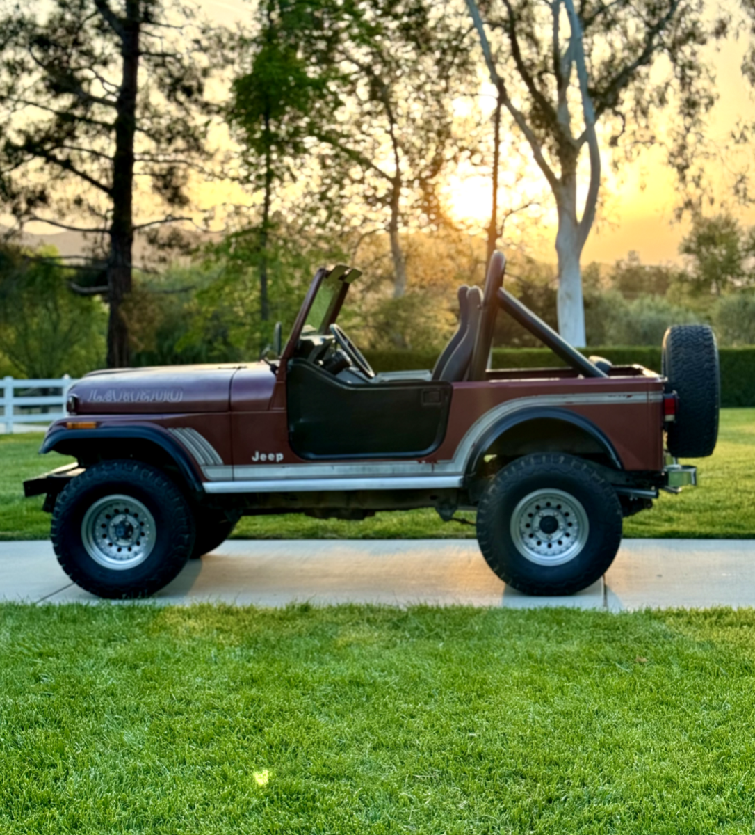 1985 JEEP CJ7 LAREDOThis AMC JEEP CJ7 Laredo is being offered for sale for the 1st time publicly since new! This 3C Garnet Metallic (Roxy's CJ) is a unique survivor wearing its original patina paint and Laredo Decals that make it a truly unique CJ that you just don't see often. This Jeep has been in SoCal and Arizona its whole life which helped to preserve it. It has the 4.2 6 Cylinder Engine with 5 Speed Transmission. It starts easily, runs & shifts smooth and stops at it should. The factory Laredo seats were changed at some point to black bestop seats, I do not know why. It has fairly new BFG All Terrain tires on after market aluminum wheels. The body is very dry other than one small spot pictured on the passenger side. All of the lights, brake lights, turn signals, dash lights work. The fuel tank was cleaned and new in tank sending unit, fuel lines, fuel filter, fuel pump, & weber carb cleaned, along with new spark plugs, oil change, new fuel and temp gauge and new exhaust. New dash speakers and radio w/ bluetooth. I do have all of the soft top parts, but it will need a new soft top if desired.Any other questions feel free to ask.The JEEP is located inTemecula CA 92592