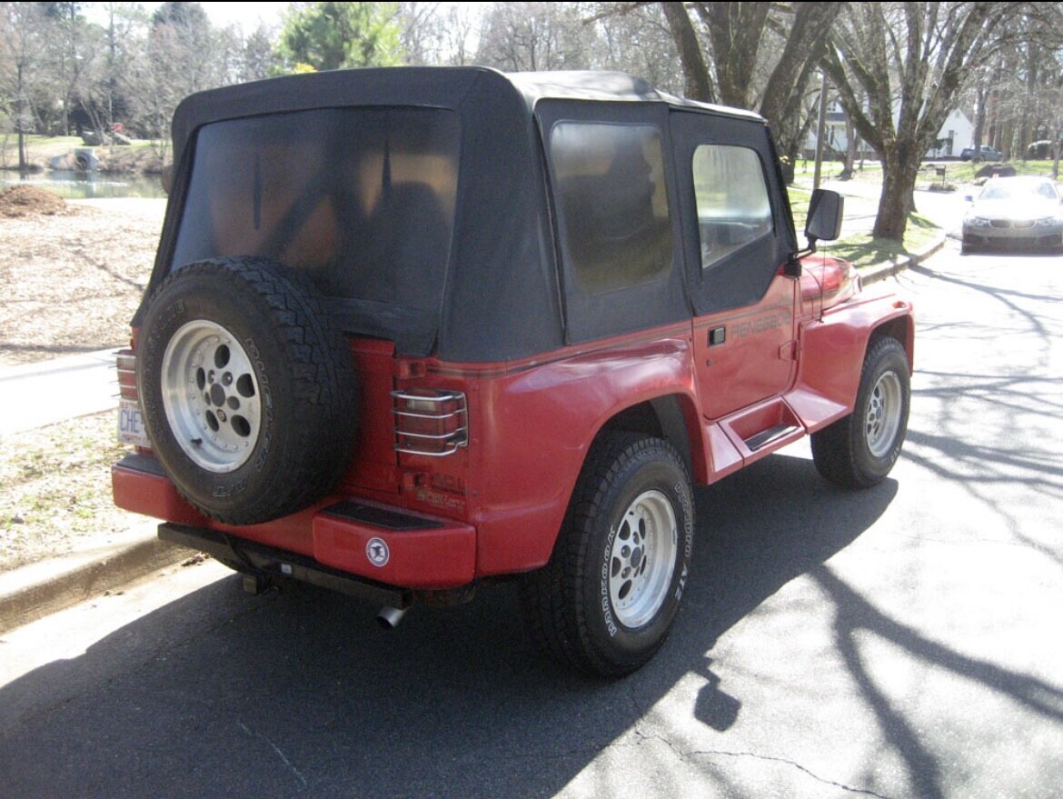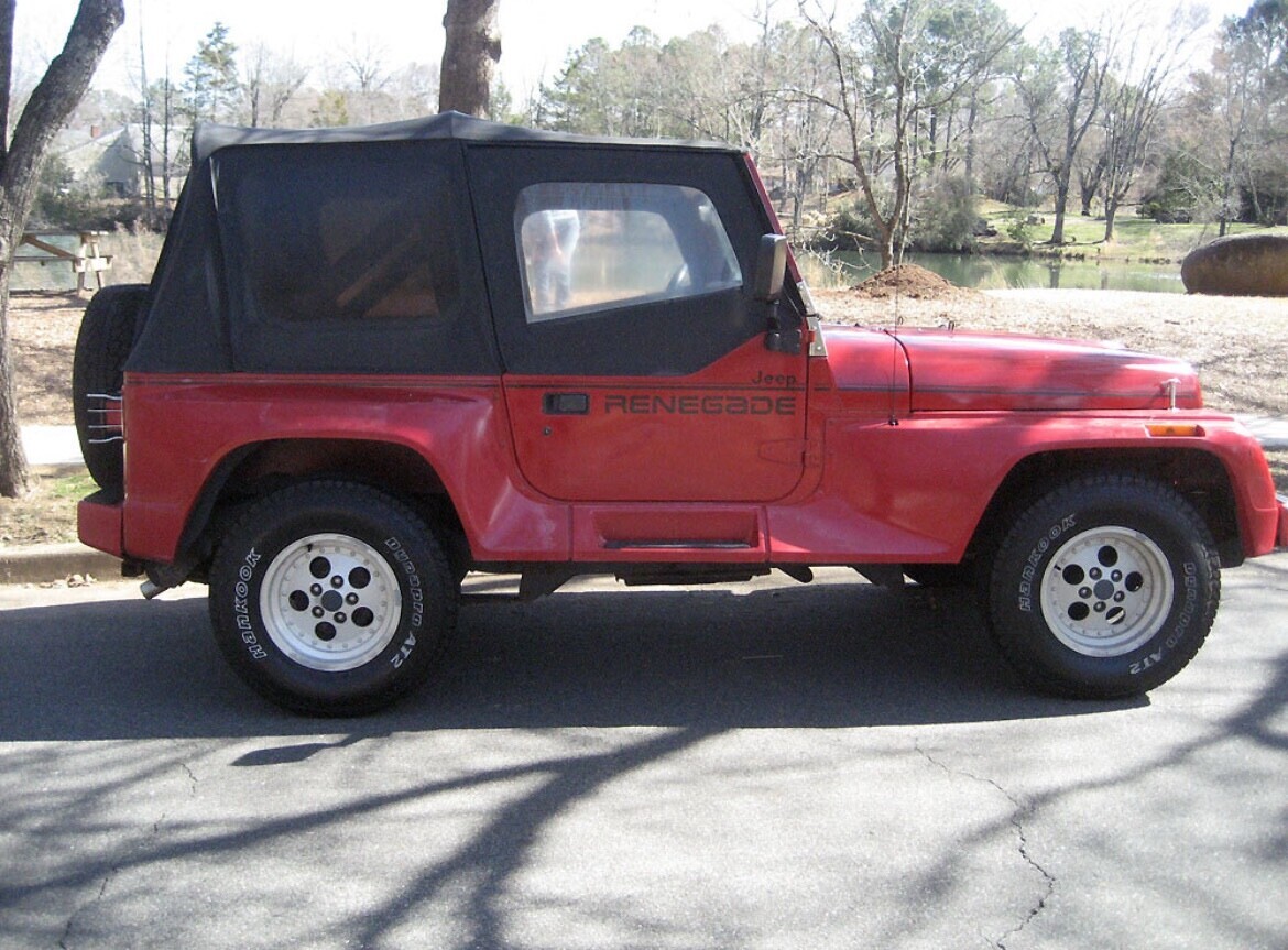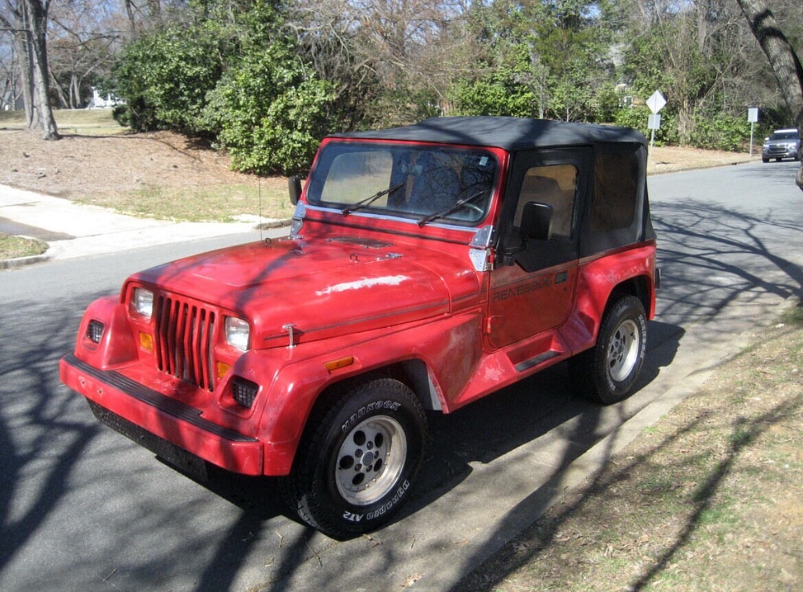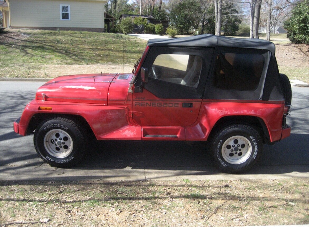 1991 Jeep Wrangler Renegade 4.0-liter inline-six engine Tranny: 5-speed manual Four-wheel drive Mileage: 141000 No Accidents New Tires Top & interior in great shape New side mirrors New temp sensor Some clear coat fading No dents/dings No oil leaks /No blue smoke AM/FM stereo/ CD + overhead speakers All gauges work including the clock Recent tune up (spark plugs + oil/filter change)