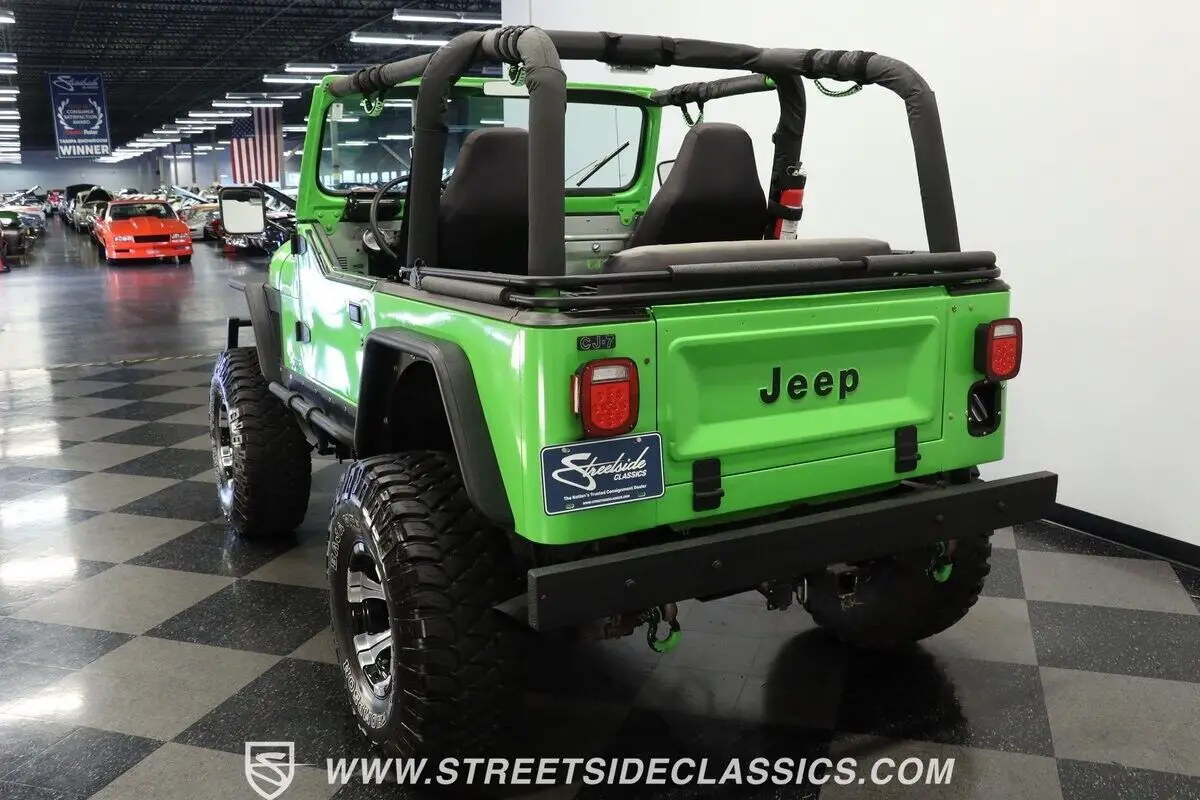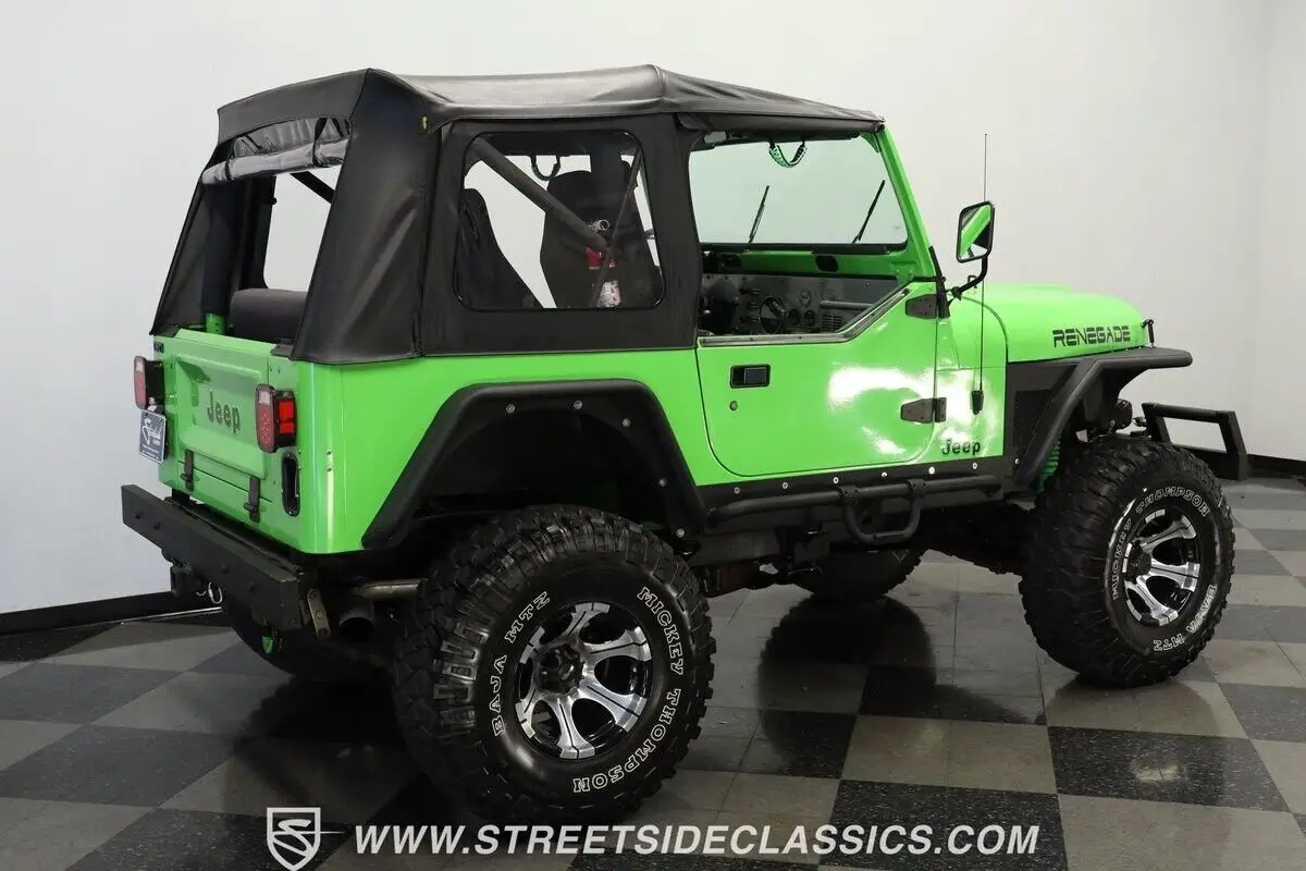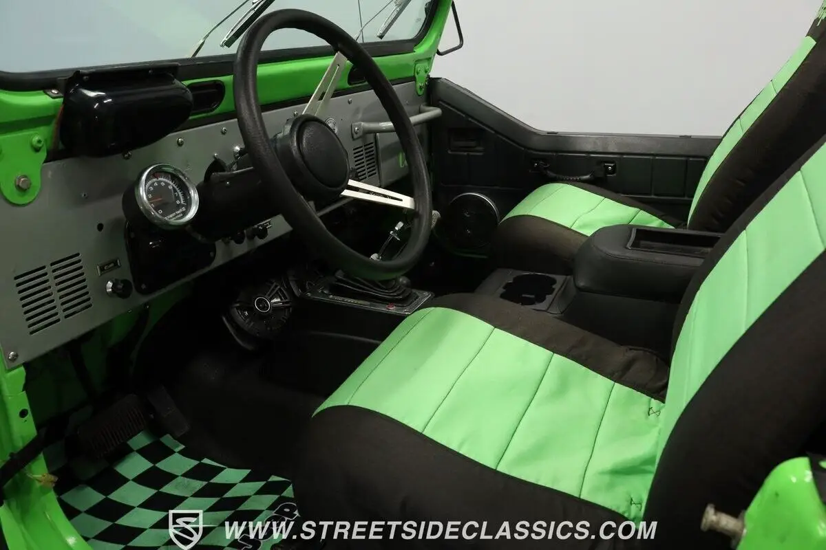350 V8 engine TH350 automatic transmission New Dana 35-411 rear gears with lockers and new Dana 30 -411 front gears Sony digital media player with remote and Bluetooth/USB Dick Cepek DC-2 wheels Mickey Thompson Baja MTX 35x12.5LT tires New Smittybilt XRC 9500 winch 4-point padded roll cage Holley carburetor Headman headers Lift kit