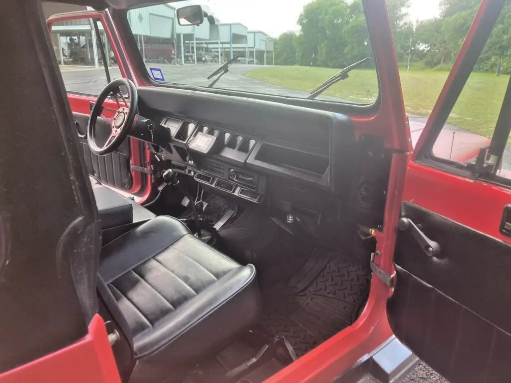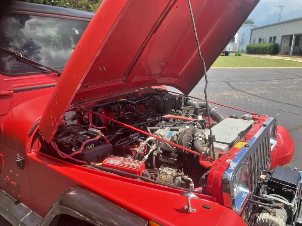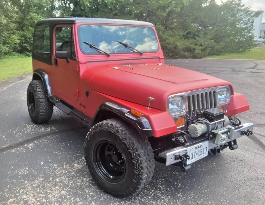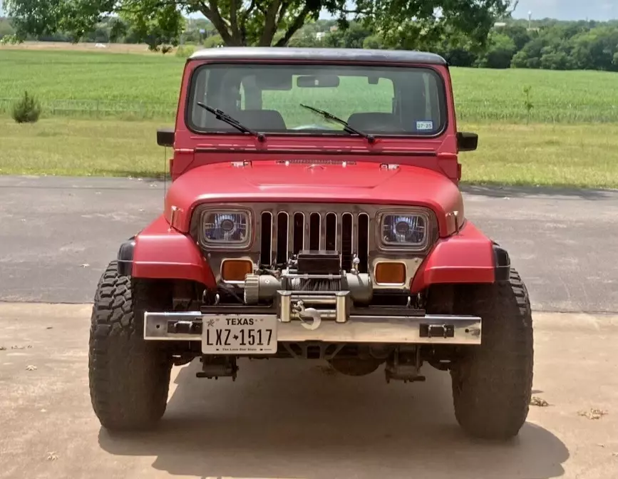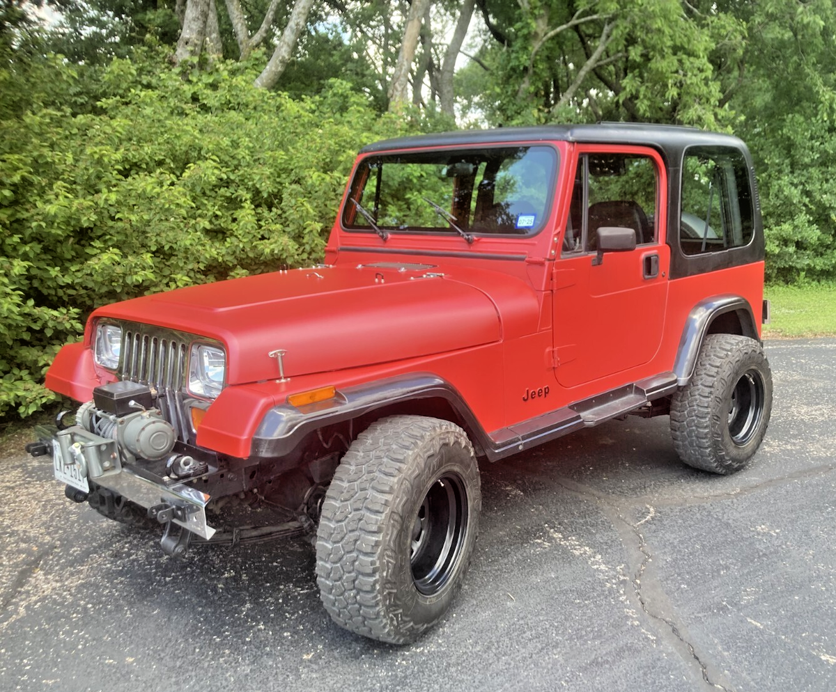 1993 Jeep YJ for sale. Less than 900 miles on a new Jasper 4.0 litre engine, 6 cylinder. Original miles are 143,500. F.A.S.T. fuel injection system, manual 5 speed transmission. Has a great air conditioner. Stereo with cd player, bluetooth. New clutch and pressure plate, new exhaust, new shocks. Universal joints are new. Over sized tires, black wheels. New spare, rim and spare tire cover. Tow bar and wired for towing. Has a hard cover which can be removed. Has been wrapped and I have additional wrap. I have chrome nerf bars that have not been installed and a new set of carpeting (the existing carpet is in greatshape). There is a winch on the front bumper that does not work. I am not sure if it is a winch problem or an electrical problem, something I have not worked on.