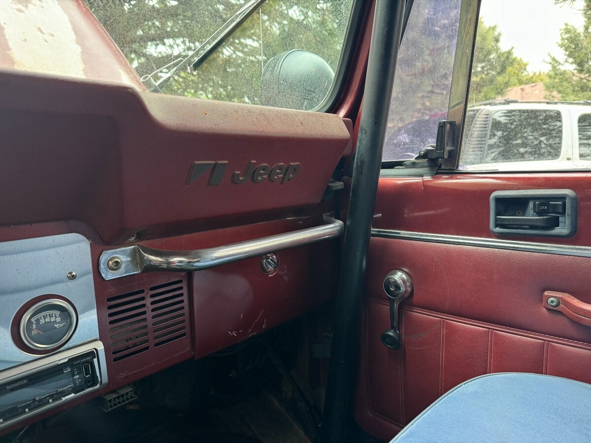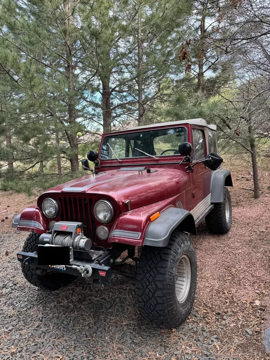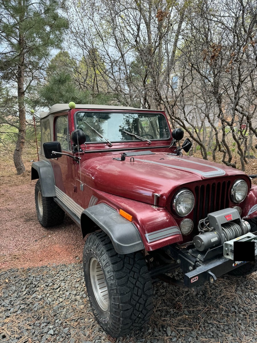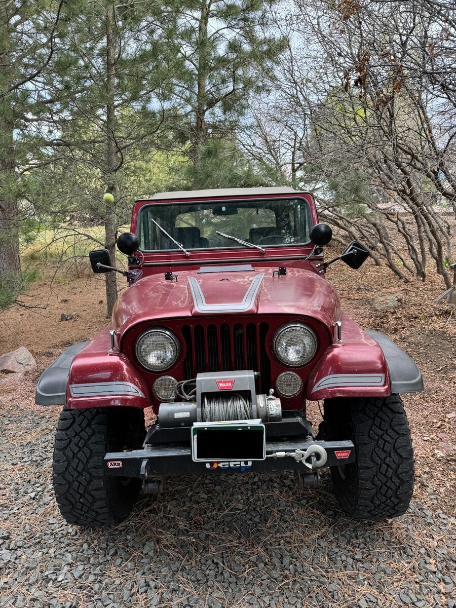 We purchased this used. We had very little chance to drive it but it ran great when we drove it.Engine: 258ci, 4.2L Inline 6 Trans: 5 Speed ManualLaredo Option PkgGauges WorkWindshield Wipers InoperableSoft TopFull Steel DoorsExtra Set of Soft DoorsPower SteeringFront Disc/Rear Drum BrakesDana 44 Front and AMC 20 rear differentialsOriginal Paint.Aftermarket options include: Full Roll Bar System, Warn Winch, 4" suspension lift.Currently installed tires are 33x12.5R15ATGreat foundation for a restoration or revert back to around town driver.Note: Driver and passenger seats do not adjust forward and backward