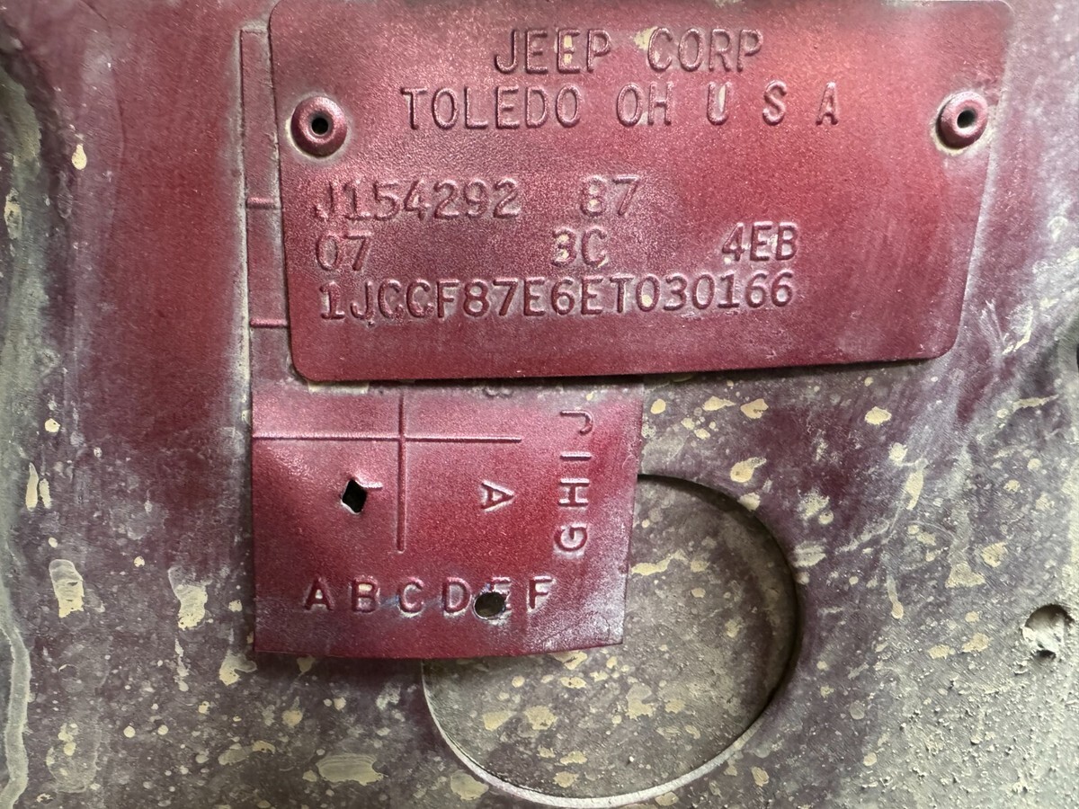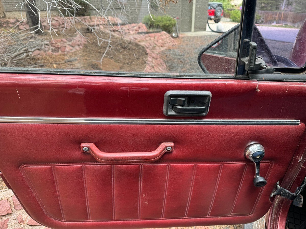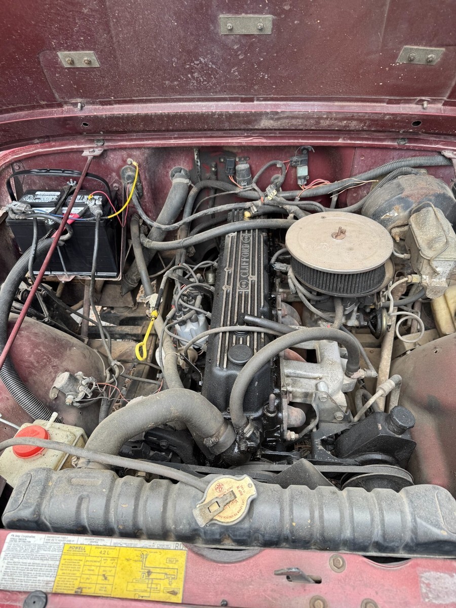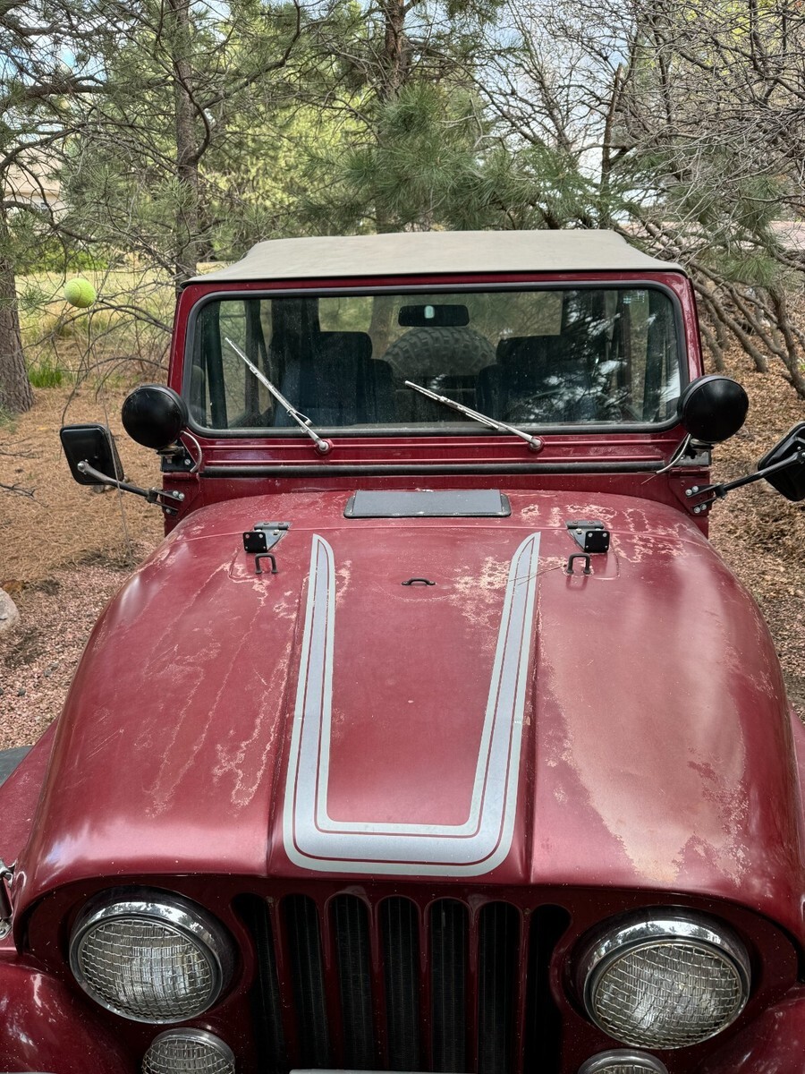 We purchased this used. We had very little chance to drive it but it ran great when we drove it.Engine: 258ci, 4.2L Inline 6 Trans: 5 Speed ManualLaredo Option PkgGauges WorkWindshield Wipers InoperableSoft TopFull Steel DoorsExtra Set of Soft DoorsPower SteeringFront Disc/Rear Drum BrakesDana 44 Front and AMC 20 rear differentialsOriginal Paint.Aftermarket options include: Full Roll Bar System, Warn Winch, 4" suspension lift.Currently installed tires are 33x12.5R15ATGreat foundation for a restoration or revert back to around town driver.Note: Driver and passenger seats do not adjust forward and backward
