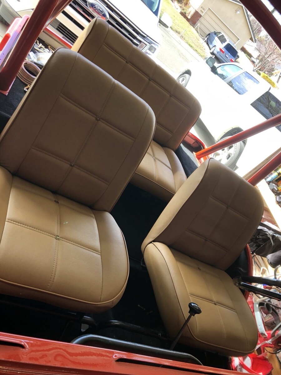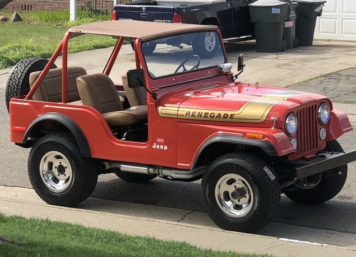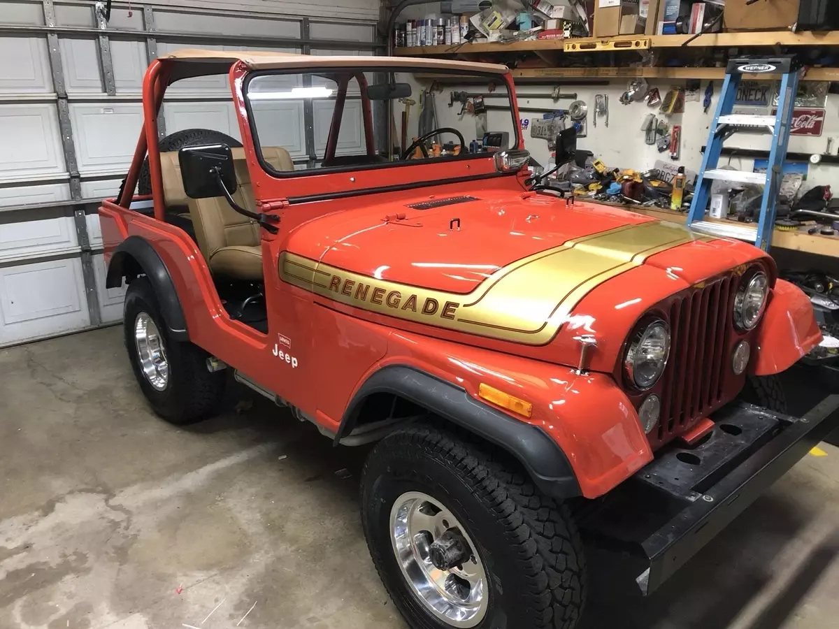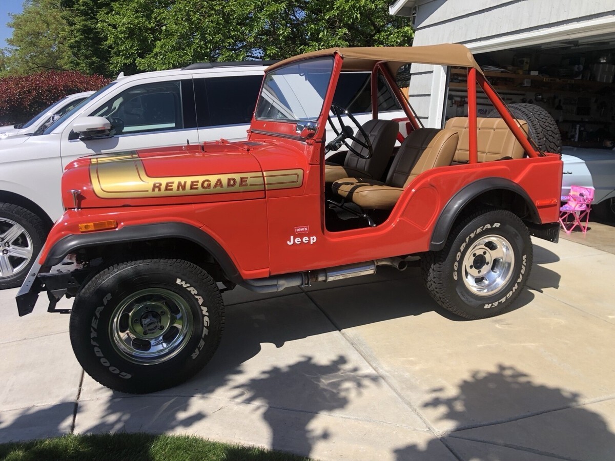 75 CJ5 original first year Levi renegade. 304 v8 3 speed manual, msd ignition and dst, new holly carb, fender headers, solid rear panel, original color, new paint, new Levi seats, carpet kit, rust free, led lights front and rear, stock looking radio I dash with Bluetooth and 4 6x9s. Tan bikini top.