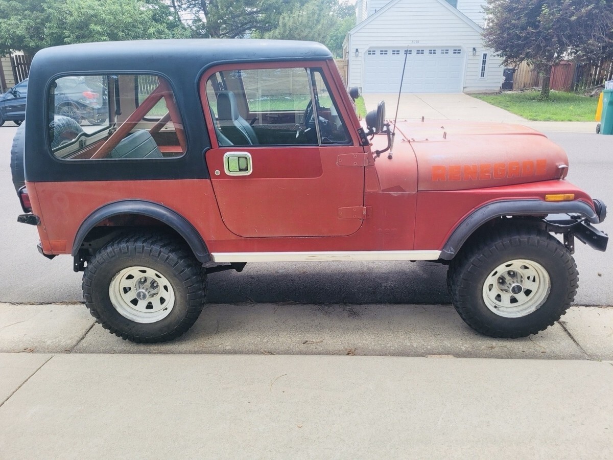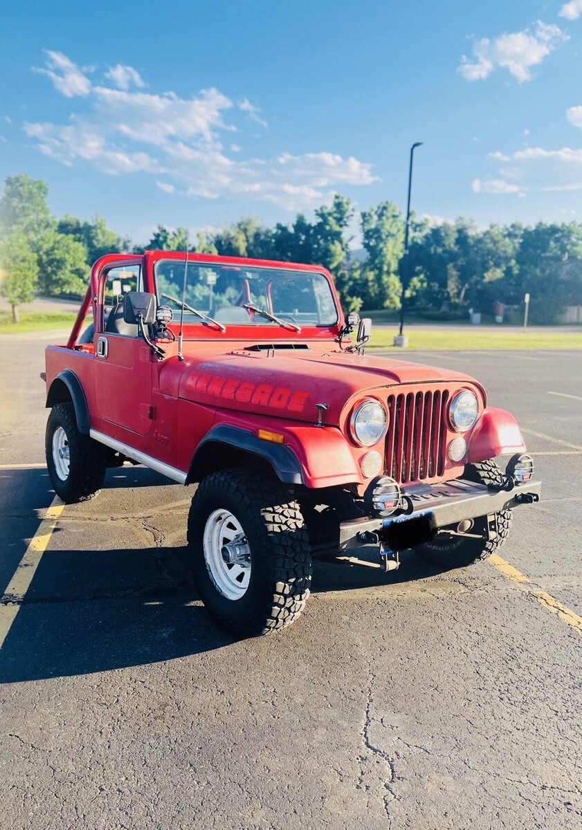 1984 CJ-7 Renegade. New seats. Upgraded larger fuel tank. Hard top and hard doors. Comes with flat tow bar and bikini top. Minor rust on floorboard of driver side and passenger side - that is the only rust. Clean Colorado title. Can pass emissions. Engine is 4.2L, 258 CID.