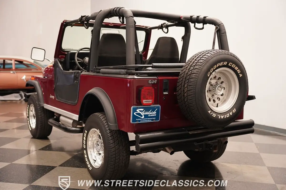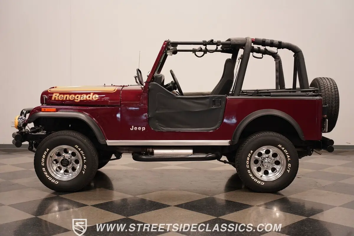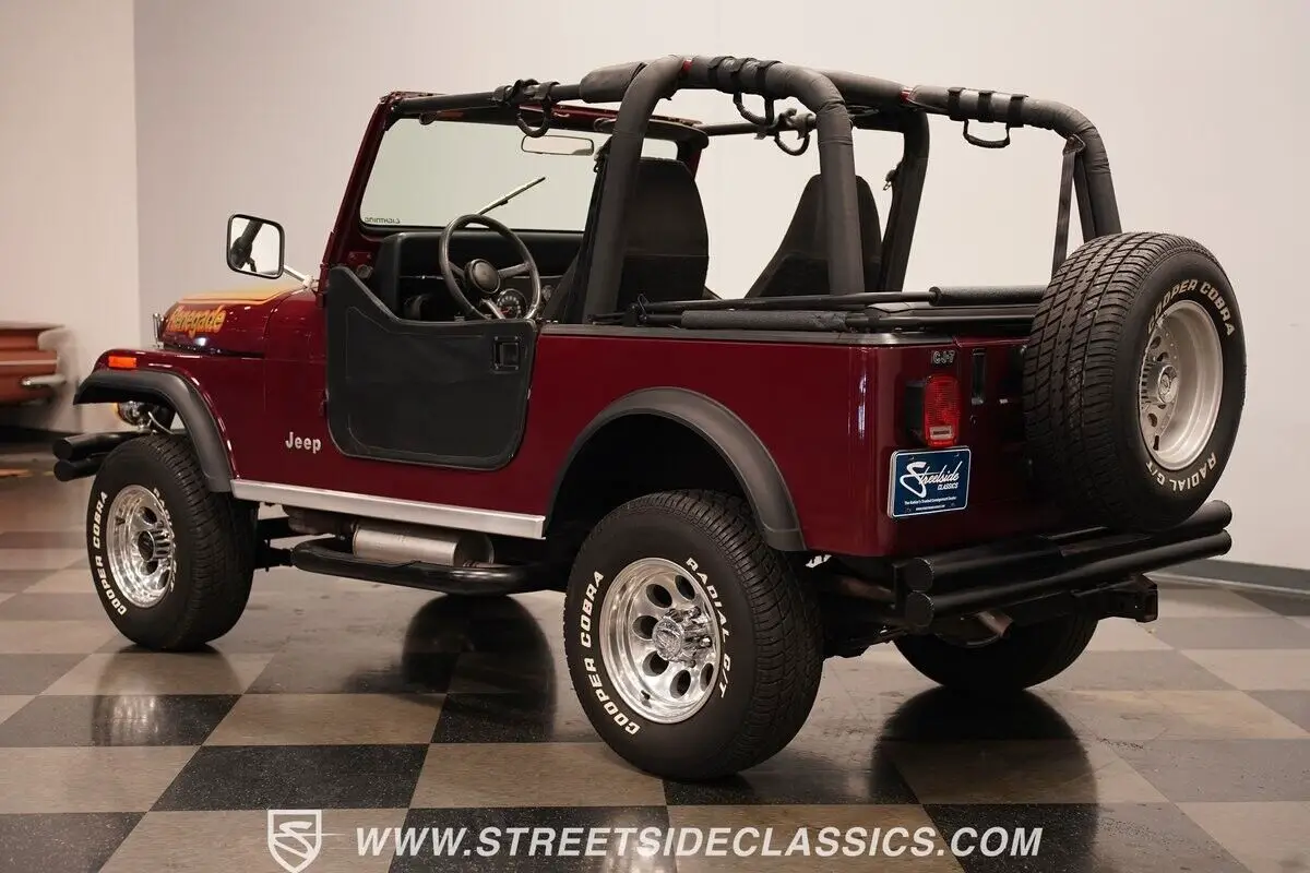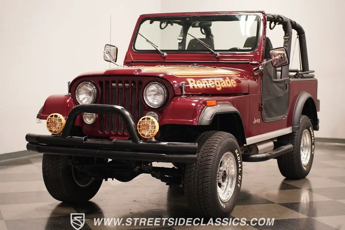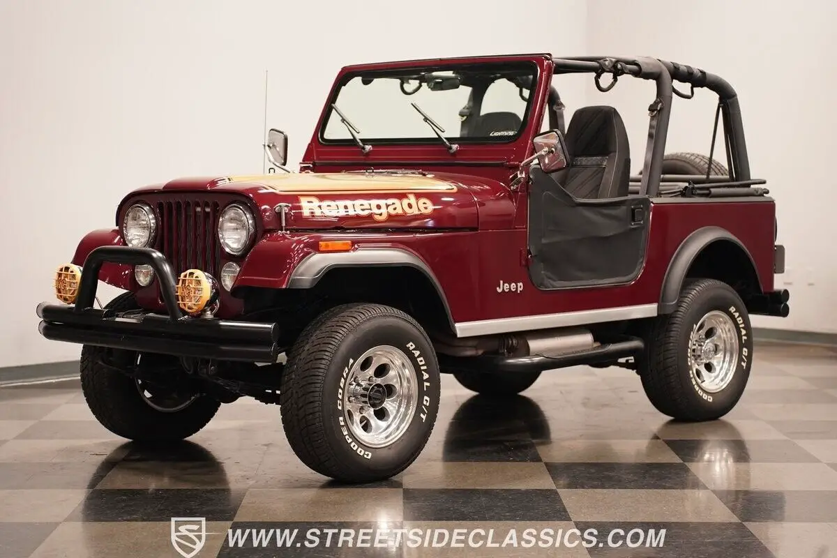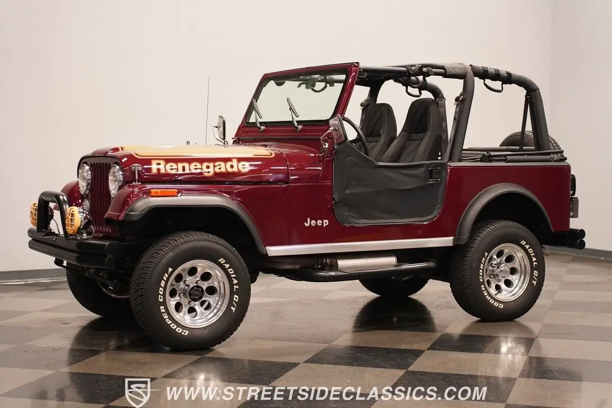 Vehicle Original VIN : J8F93AH040662Highlights: • 304 V8 Engine • 3-Speed Manual Transmission • Four-Wheel Drive • Single 4 Barrel 1406 Edelbrock Carburetor • Power Steering • Power Disc Brakes (Front) • Aluminum Radiator • Bilstein Shocks • Factory Correct Maroon Paint, Tan Decal Stripes • 15" Bullet Hole Style Aluminum Alloy Wheels • Cooper AT Tires • KC Lights • Tow Hitch • Aftermarket Step Bars • Full Soft Top • Black Cloth Bucket Seats • Aftermarket AM/FM Single CD with Aux Input • Newer Outdoor Carpeting • Upgraded Roll Cage • Customized Dash Panel • Full Set of Headers • Side Exhaust Option Available