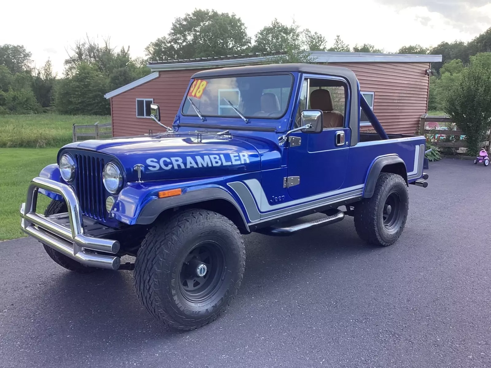 Jeep is located in Coopersburg pa 18036. I have it for sale locally for $18k but have a much lower reserve here on eBay. If you want it shipped I will work with your shipper. If your semi local you can drive it home or I can deliver for free within 100 milesI am not a dealer, I’m just a guy into Jeeps. I do not know the history of the Jeep except my friend drove to Georgia for it and than I ended up with it because he wanted one of my 2 LJ Rubicons1983 Jeep Scrambler CJ8 brought up from Georgia with a clean CJ8 titleWidetrack Dana 30/AMC 206cyl 258 runs great. Carb works fine runs smooth with no smokePower steering with manual brakesT176 4 speed with Dana 30031 in Falken tires with great treadTop is aftermarket from GR8 topsNice bulkheadJeep has been repainted with a very nice driver quality paint job. Only paint imperfection is a 2 in crack on the hood. Every one that sees the Jeep comments on how good it looksFrame is very nice with no known repairsUnderneath has not been detailed but not Rusty. Minor surface rust. All body mounts are niceInterior and bed have a liner on itSeats are out of 2018 Jeep wrangler. They recline and move back and forthDrivers floor does have a couple very small holes, barely noticeableNice factory style decalsSpeedometer works. Aftermarket gauges work, fuel, volts,temp,oil pressureWhat it needsReverse lights not working. When Jeep sits for a few days it cranks a bit for fuel to get back to the carb. Brake pedal sits highIf you look around this is one of the nicest Scramblers around in this price rangeEmail with questions, text or call. 6one0two1seven7five9oneMark