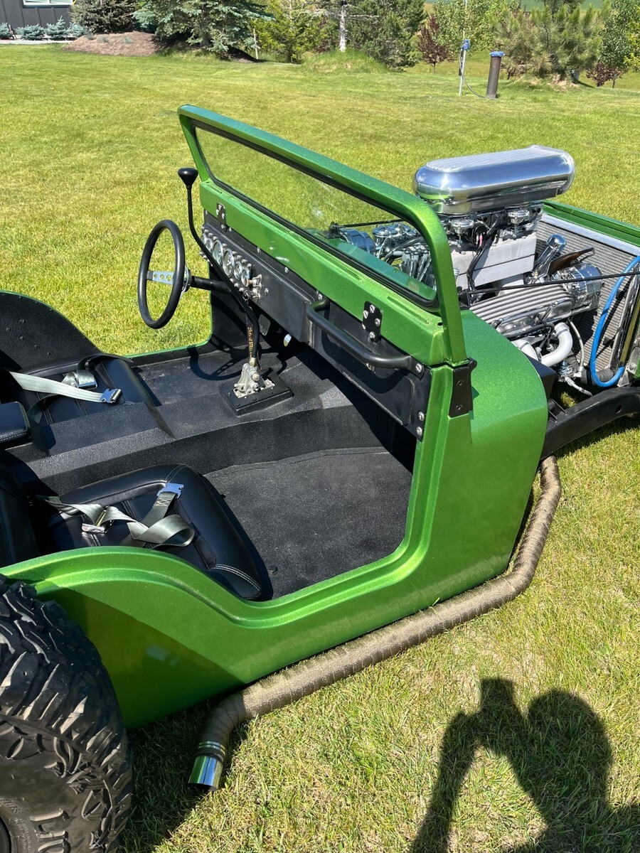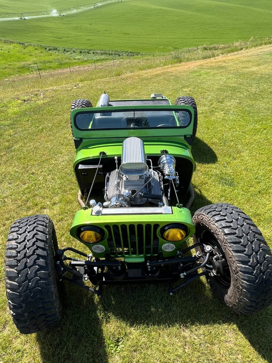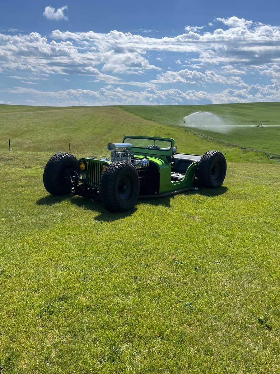 Recently completed, one-of-a-kind Jeep hot rod, new paint, seats, fuel system, wheels, ignition.Chassis is done real clean, it is bagged with a Ford 9 inch, front disk brakes, dual quads, MSD, Chevy 350 V8 and 350 Automatic trans..Clean Montana title.Deposit due with 24 hours of winning, can help set up shipping if needed, please send funds via, wire, Cash app, Zell, cashiers check only.Rat rod hot rod jeep cj5