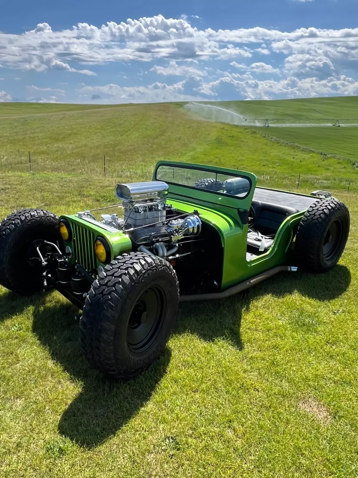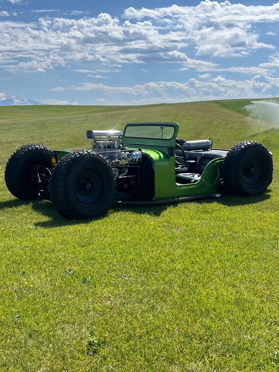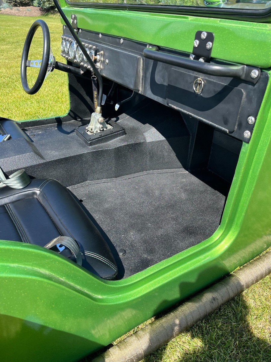 Recently completed, one-of-a-kind Jeep hot rod, new paint, seats, fuel system, wheels, ignition.Chassis is done real clean, it is bagged with a Ford 9 inch, front disk brakes, dual quads, MSD, Chevy 350 V8 and 350 Automatic trans..Clean Montana title.Deposit due with 24 hours of winning, can help set up shipping if needed, please send funds via, wire, Cash app, Zell, cashiers check only.Rat rod hot rod jeep cj5