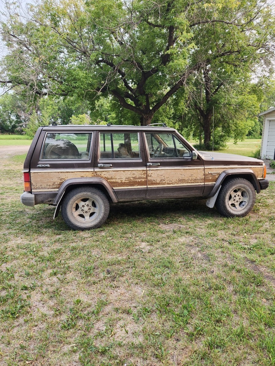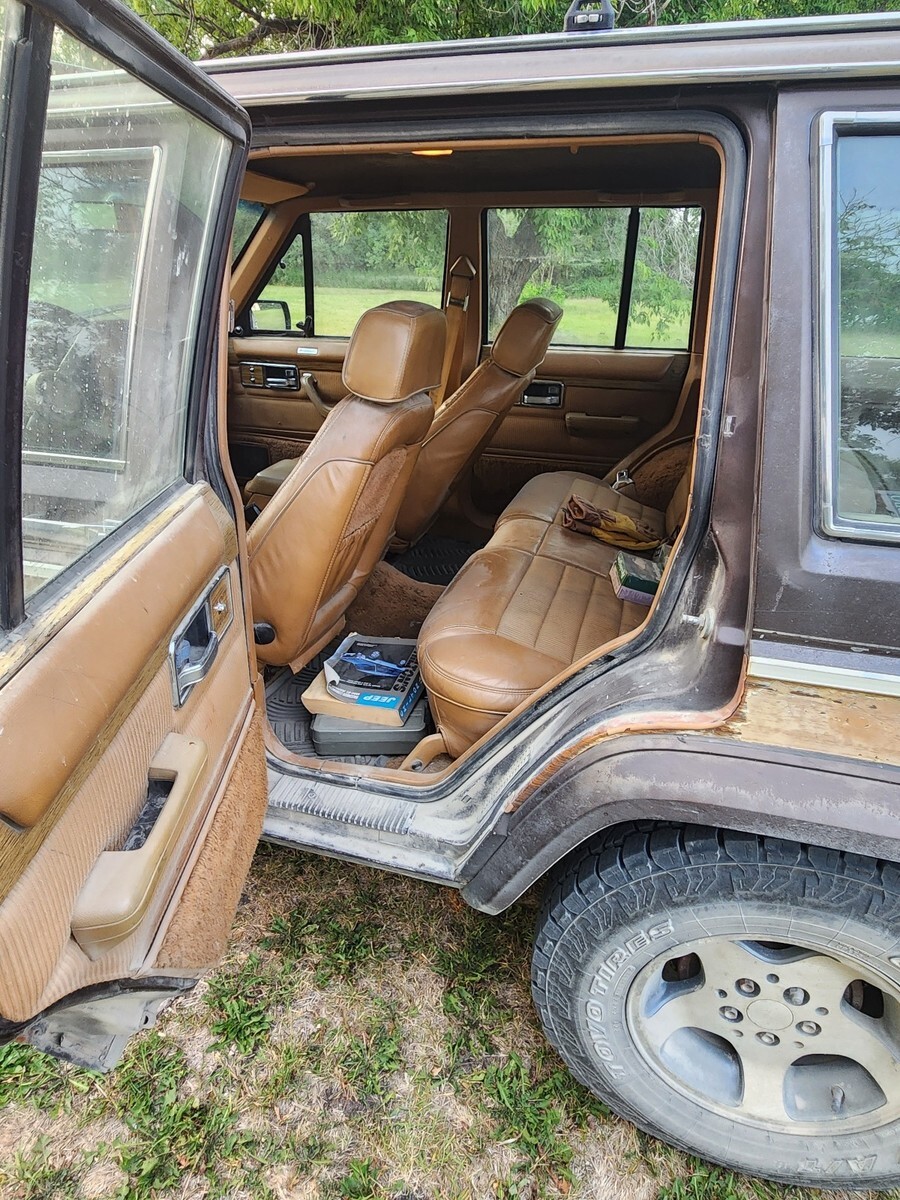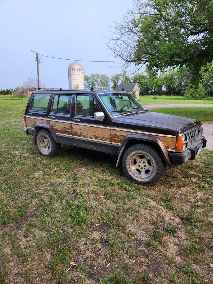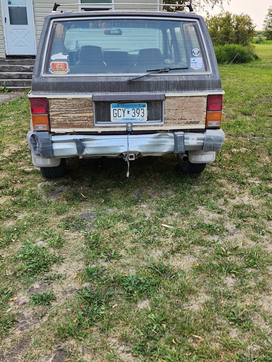 This 1986 Jeep Wagoneer is an original vehicle that has been in the owner's possession for 5 years. It is brown in color and has a mileage of 208,000. It does have some mechanical flaws that are taken into consideration reflecting the low starting bid price. However this fun little jeep still runs and drives smoothly down the road. The flaws include, an electrical connection issue that causes the vehicle lights and gauges in the dash to flicker and priodically lose connection. This started after running the vehicle through a high pressure car wash, something got wet and still seems to cause issues. The 4x4 works, however the selectrac feature is stuck in 4 High. When trying to switch back to 2 wheel drive something in the linkage grinds. This jeep is an automatic, with the floor style shift lever between the front seats. The lever sometimes has to be placed in neutral, rather than park, when starting the vehicle. This mostly happens if the shift lever isn't put into the park position with enough force to lock it in, but once in neutral it turns over and starts as it should.