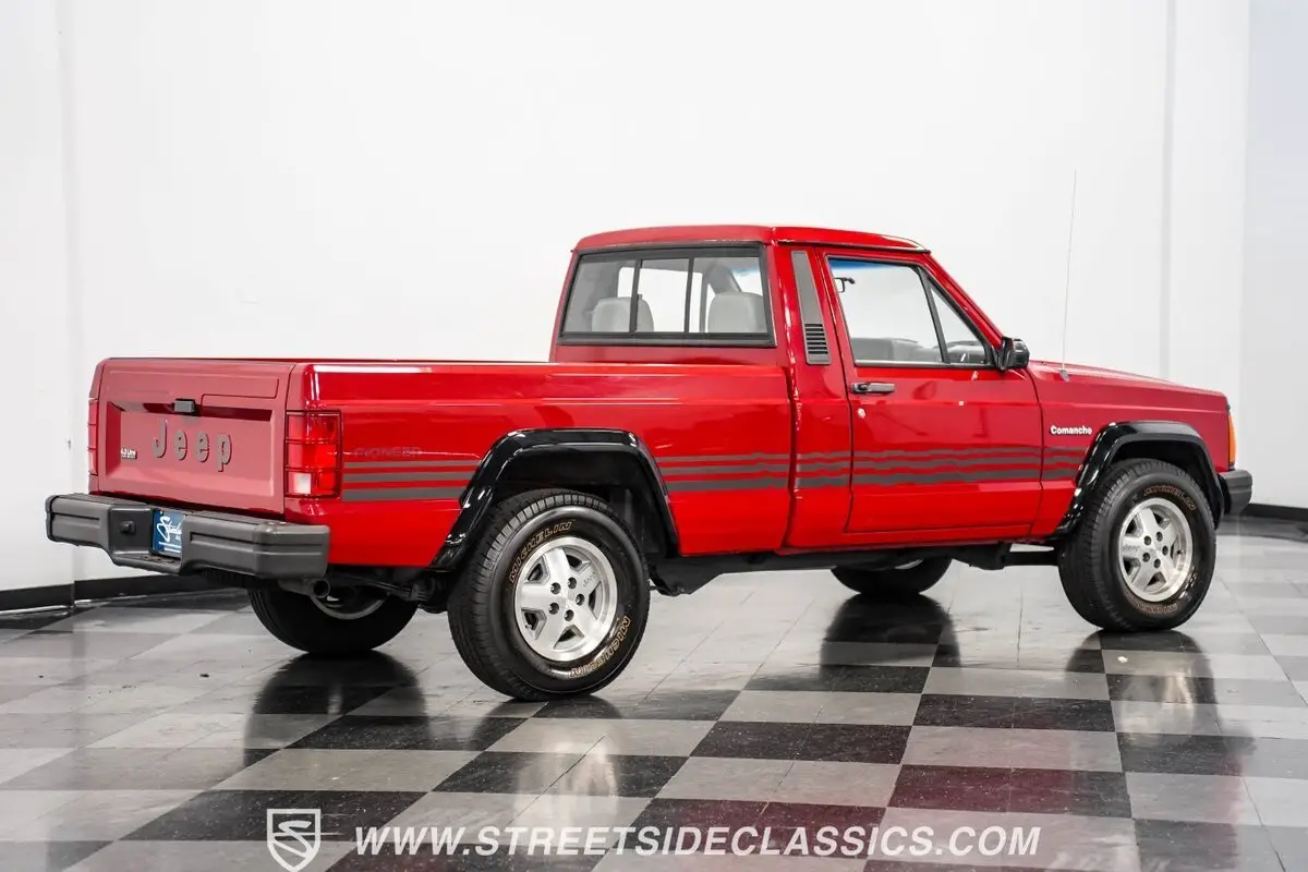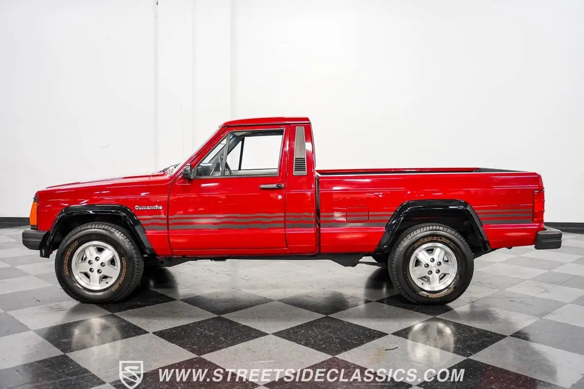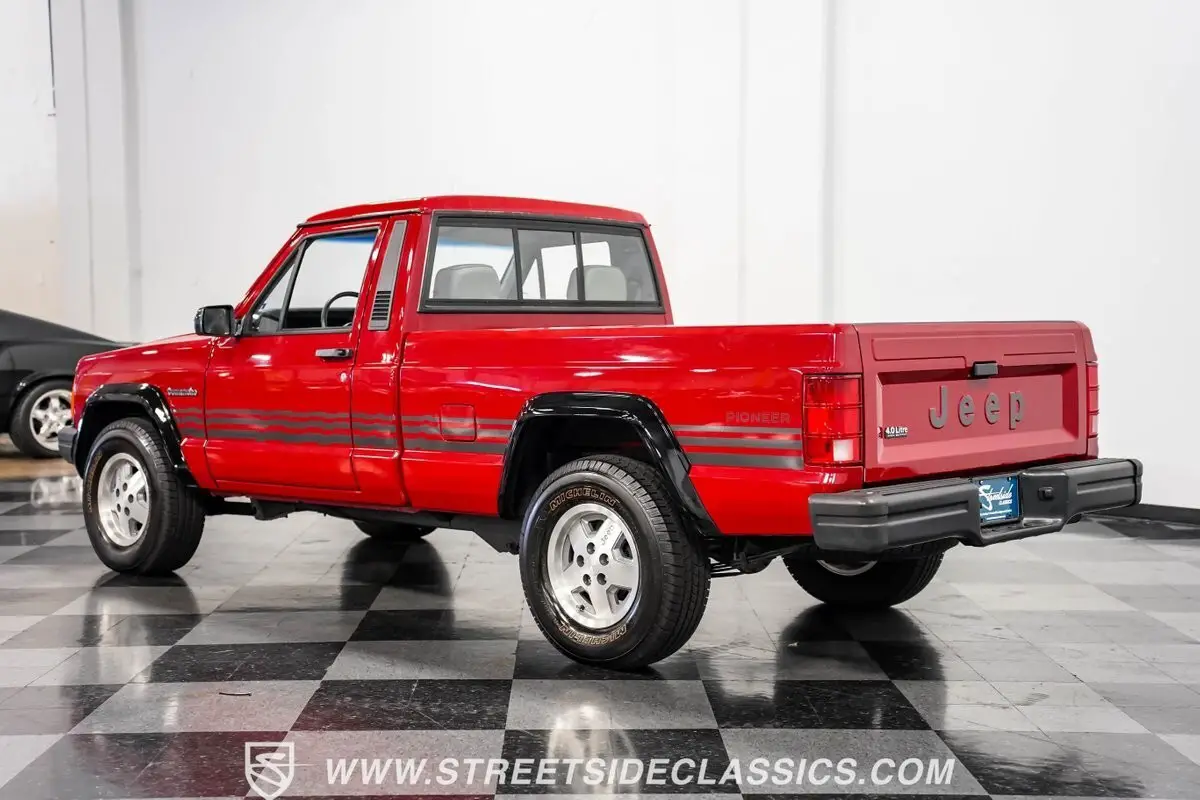 This low-mileage 1991 Jeep Comanche Pioneer pick-up embodies the untamed spirit of exploration. Painted in an attractive Colorado Red, this rare truck is believed to have traveled only 23,121 miles since it was new, and it looks it. The factory paint has a deep shine and the factory applied graphics on the sides are still in place and look great, and the original factory alloy wheels are wrapped with Michelin white lettered tires. This time-warp original condition of the interior is equally impressive. The cabin boasts all original gray upholstery, carpets, door panels, and a headliner, exuding a freshness rare in vehicles of its age. The factory AM/FM/cassette radio is still in place, as well as the attractive factory 3-spoke sport steering wheel. With the truck is the original window sticker, broadcast sheet, sales brochure and dealer invoice. Beneath the hood, the legendary 4.0 Liter I6 engine is stock and unaltered. Paired with a 4-speed automatic transmission, expect a driving experience that is as close what these trucks were like when new. Nothing drives as nice as a low-mileage original truck. The clean engine bay reflects the meticulous attention to detail seen throughout the vehicle, and power steering and cold air conditioning contribute to an exceptional driving experience. HIGHLIGHTS: • 4.0 Liter I6 Engine • 5 Speed Manual Transmission • 23,121 Miles from New • Electronic Fuel Injection • Power Front Disc Brakes • Original Paint • Factory Side Graphics • Factory Alloy Wheels with Michelin Tires • Factory AM/FM Cassette Radio • Original Gray Interior • Original Carpets, Door Panels, Headliner • Air Conditioning • Original Window Sticker • Broadcast Sheet • Original Dealer Invoice • Factory Sales Brochure This 1991 Jeep Comanche Pioneer, with only 23,121 miles on the odometer is a rare find indeed. Well documented and carefully preserved, this fantastic original 1991 Jeep presents a rare opportunity to acquire one of the lowest mileage, highly original Comanche Pioneers anywhere. Call today!